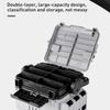 Двустороннее хранение: Увеличьте эффективность хранения с помощью двухсторонних отделений этого рыболовного ящика.. Наслаждайтесь легким доступом к инструментам и аксессуарам благодаря плавному механизму открывания и закрывания.