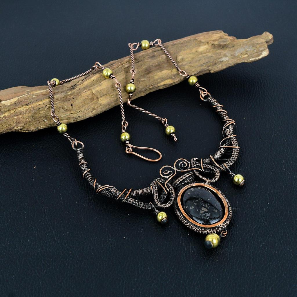 Ожерелье из шунгита, дизайнерское ожерелье ручной работы, обернутое медной проволокой 999 пробы, ювелирное изделие, ожерелье с регулируемой цепочкой, подарок для женщин