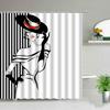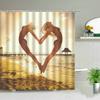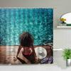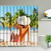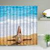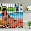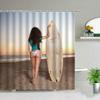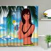 Солнечный свет Пляжная девушка Пальма Доска для серфинга Пейзаж Шторки для душа Сексуальная женщина 3D-принт Шикарная занавеска Декор для ванной комнаты С крючками