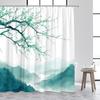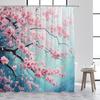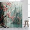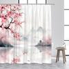 Японский пейзаж Шторы для душа Абстрактная гора Розовый цветок сакуры Цветочный Птица Павильон Азиатское искусство Декор для ванной шторы