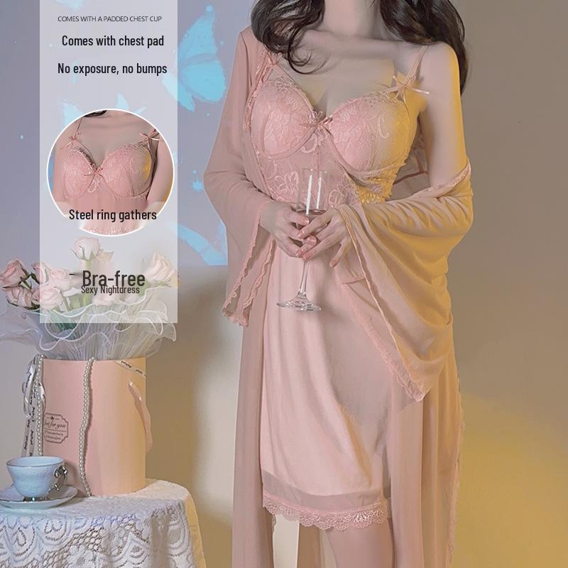 Элегантная ночная сорочка на косточках с нагрудными вкладышами и комплект с халатом для женщин — купить товар онлайн с бесплатной доставкой по всему миру!