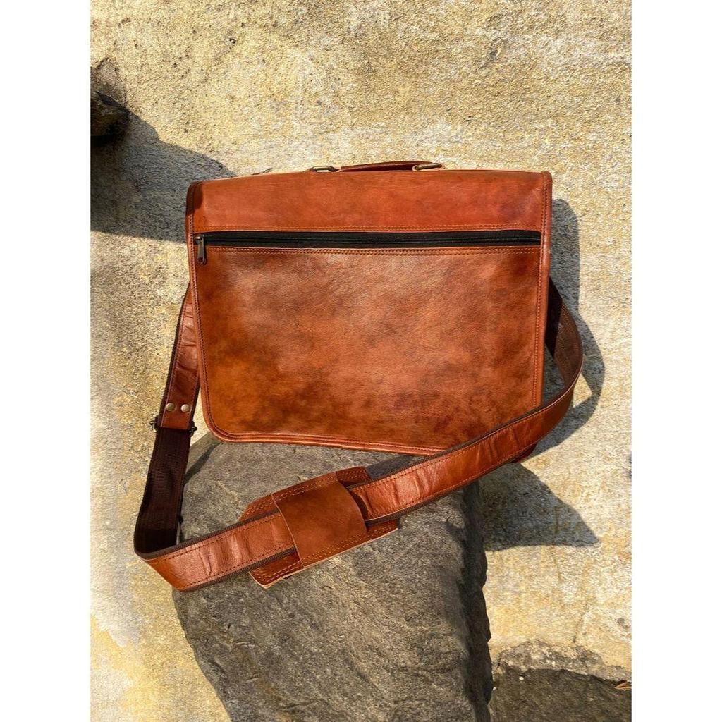 Ручная работа, сумка-мессенджер из козьей кожи: Сумка-портфель для ноутбука