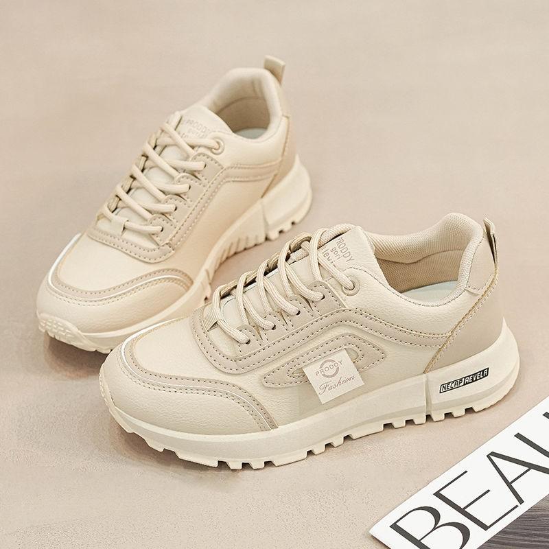 Кроссовки Женские 2025 Новые Весенние На Плоской Подошве Легкие Беговые Кроссовки Студенческие Универсальные Повседневные Туфли Кожаная Поверхность Водонепроницаемые Универсальные