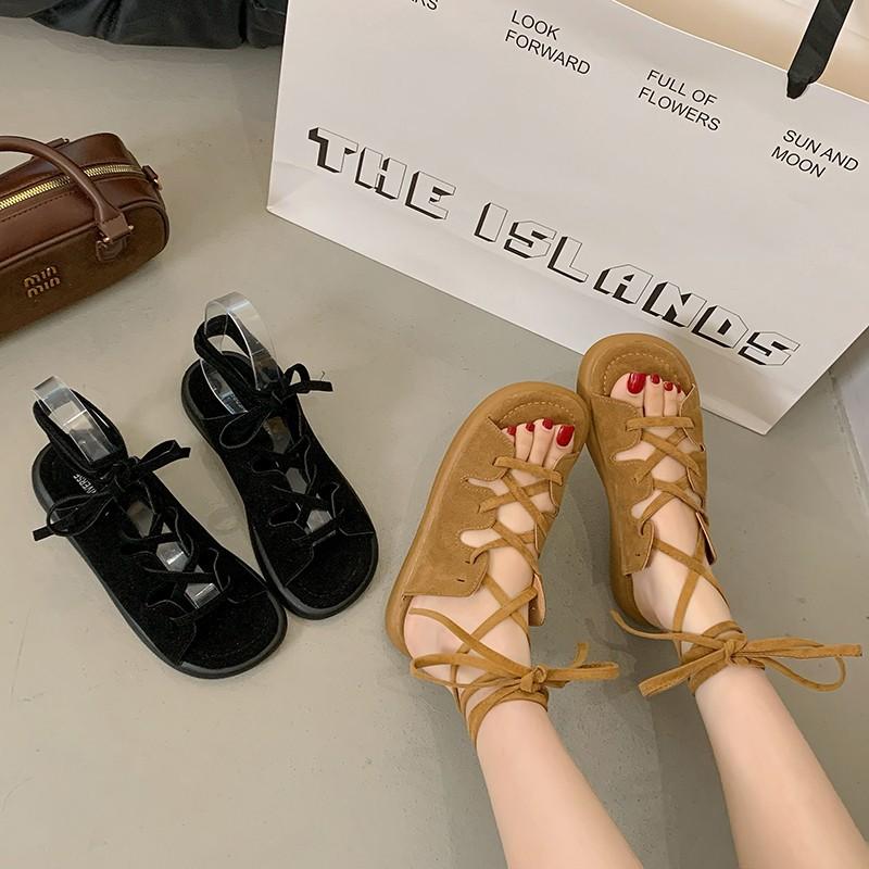 2025 лето новые сандалии с ремешком на щиколотке с круглым носком, удобная пляжная обувь, внешняя торговля, большой размер, сандалии на платформе женские