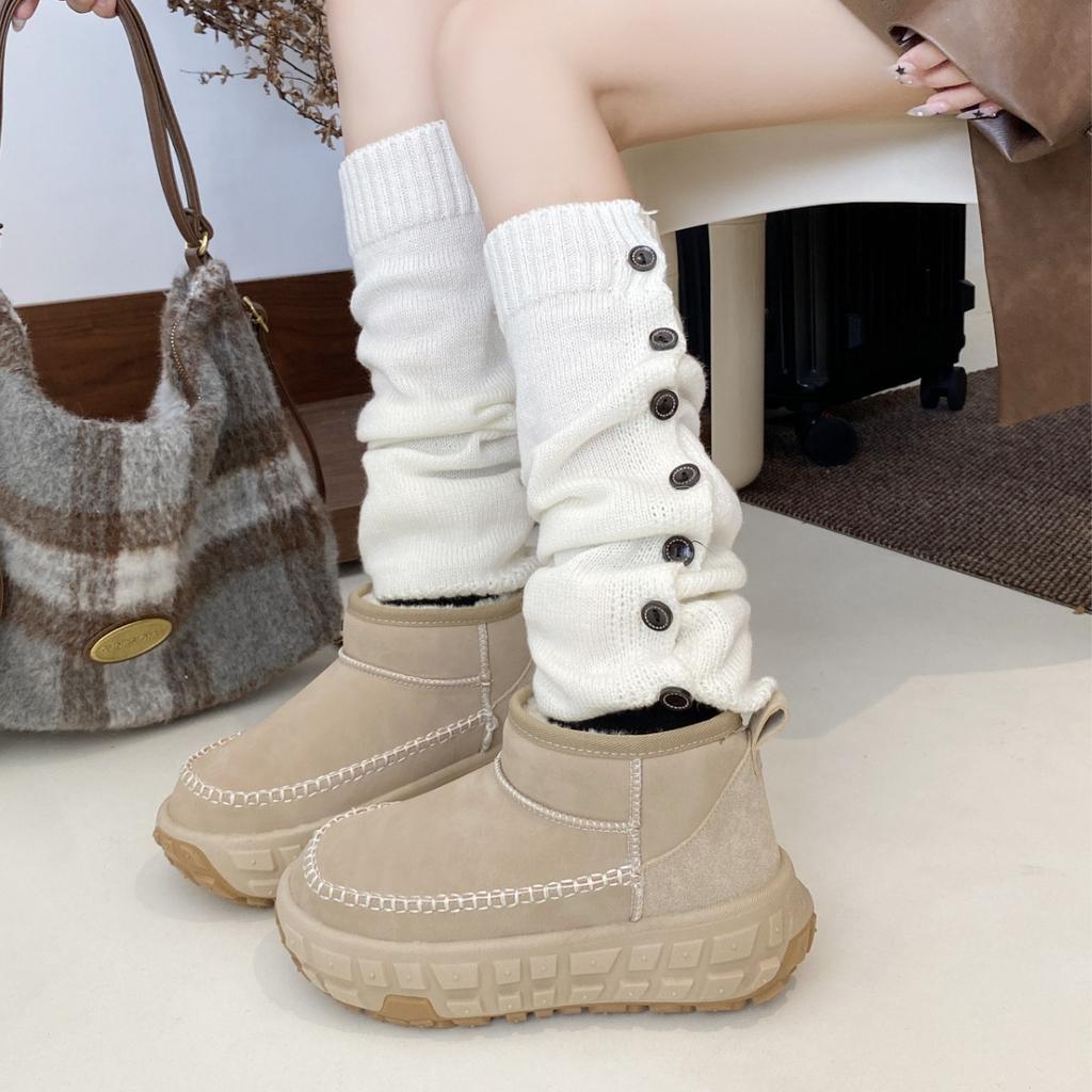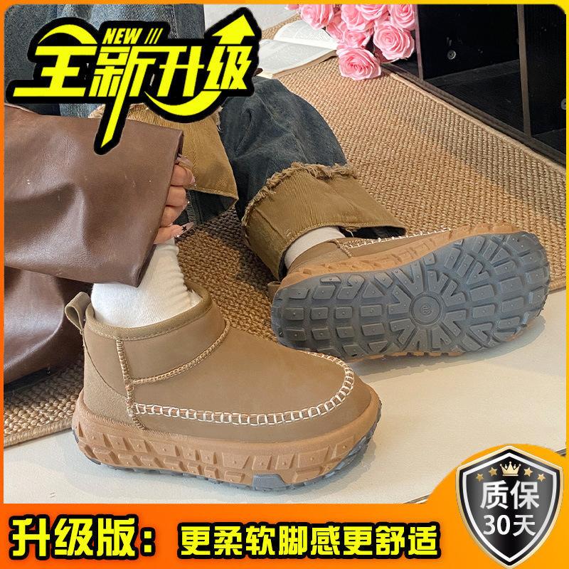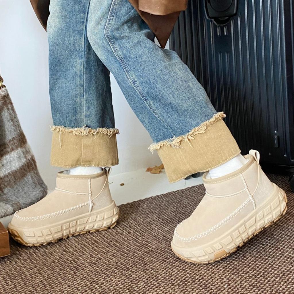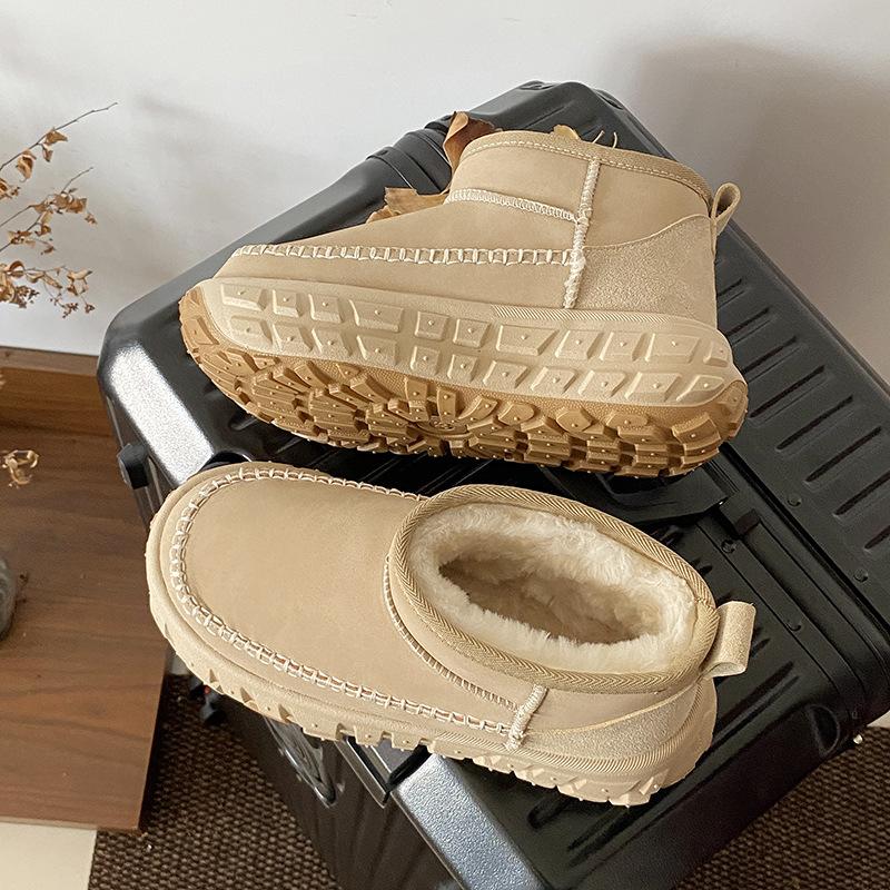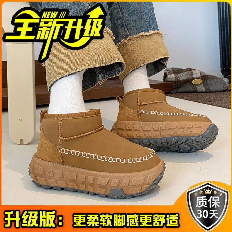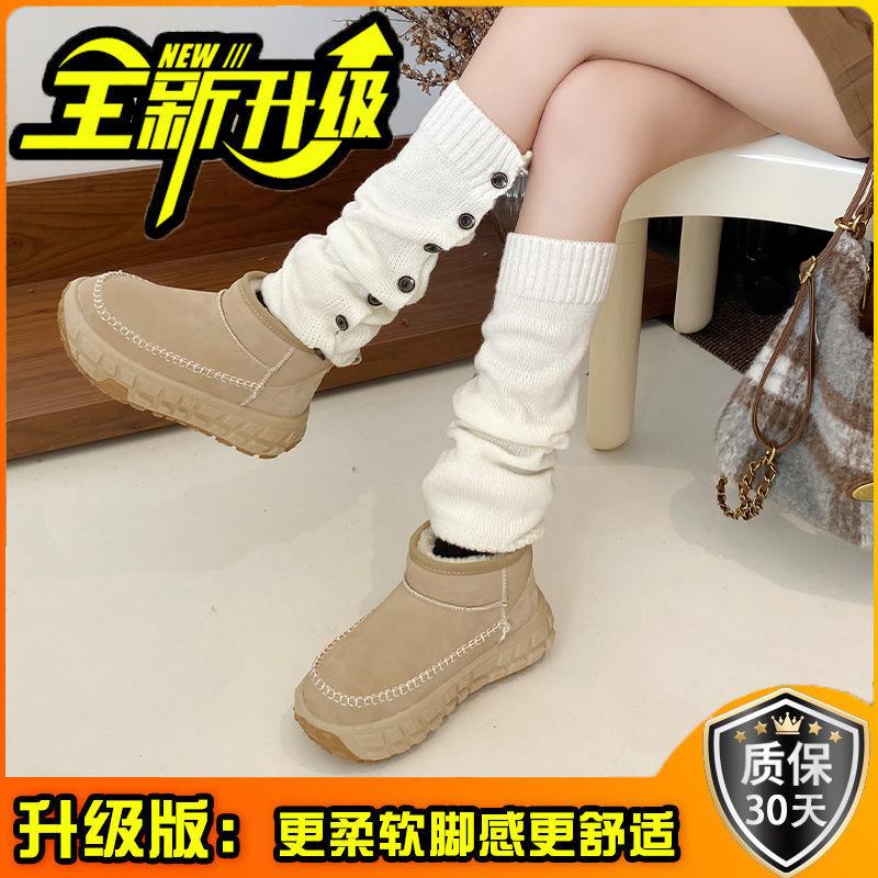 Короткие зимние ботинки женские подошва-протектор флисовые термоботинки 2025 зима нескользящие и износостойкие замшевые шерстяные кроссовки