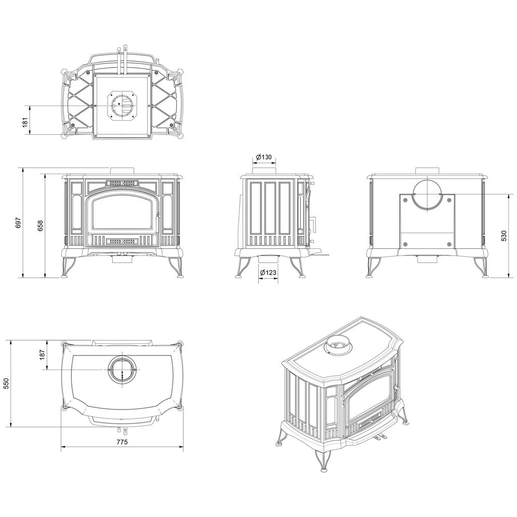 Чугунная дровяная печь KRATKI K9 ECO Ø 130 8 кВт