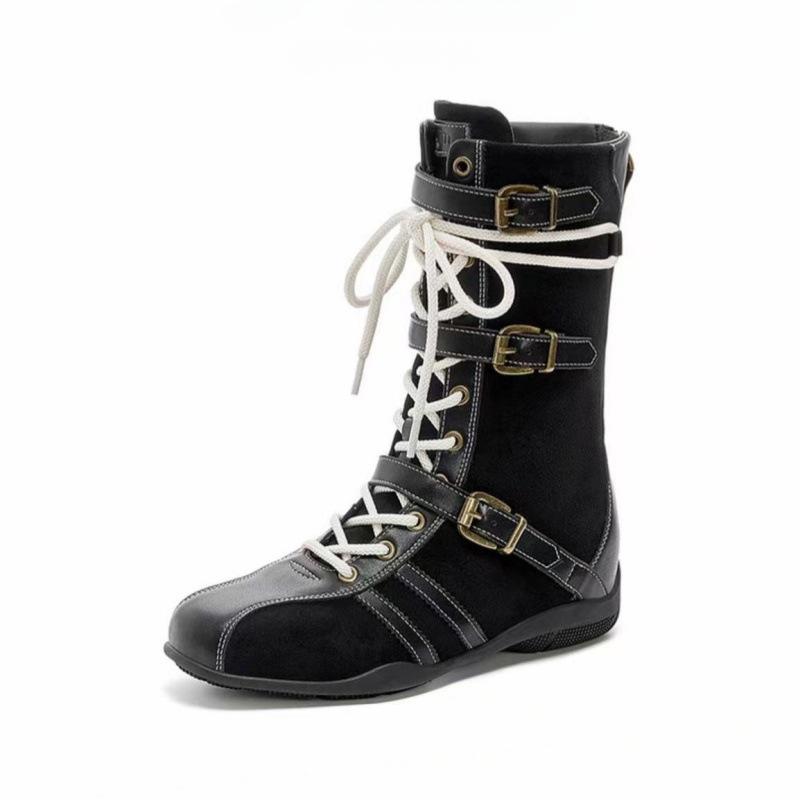 Han Shi retro leather boxing boots women's autumn 2025 new British Martin boots thick-soled German training medium boots