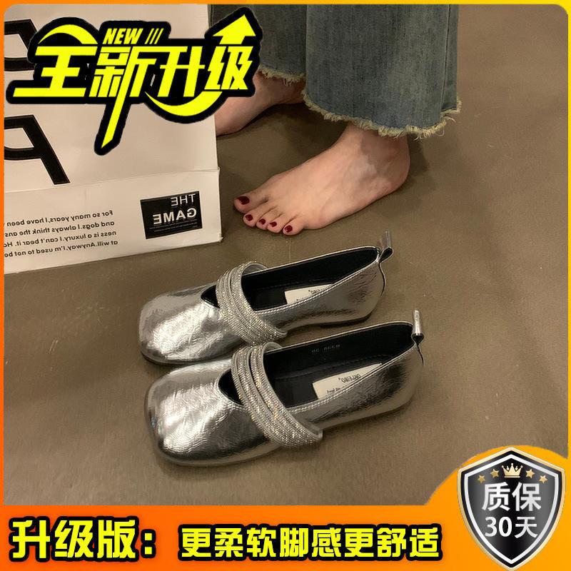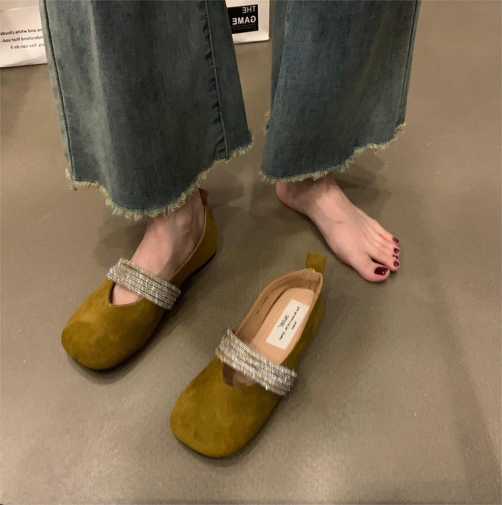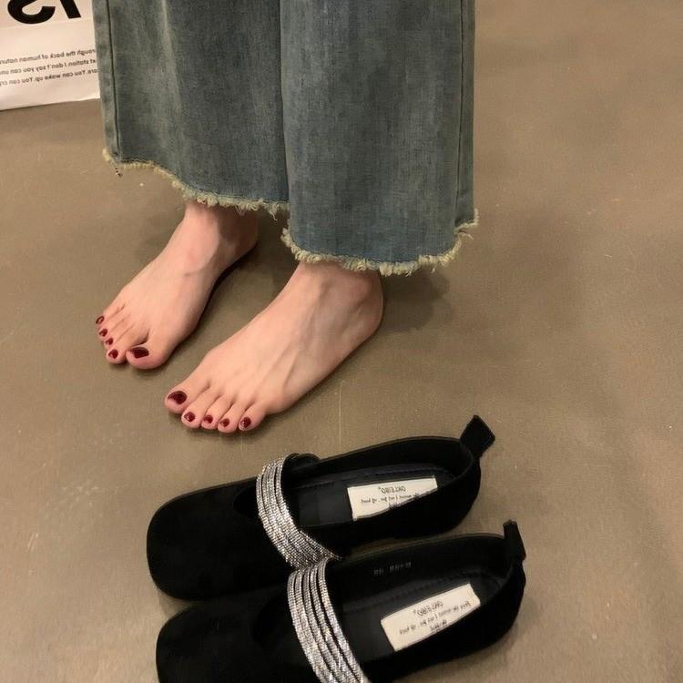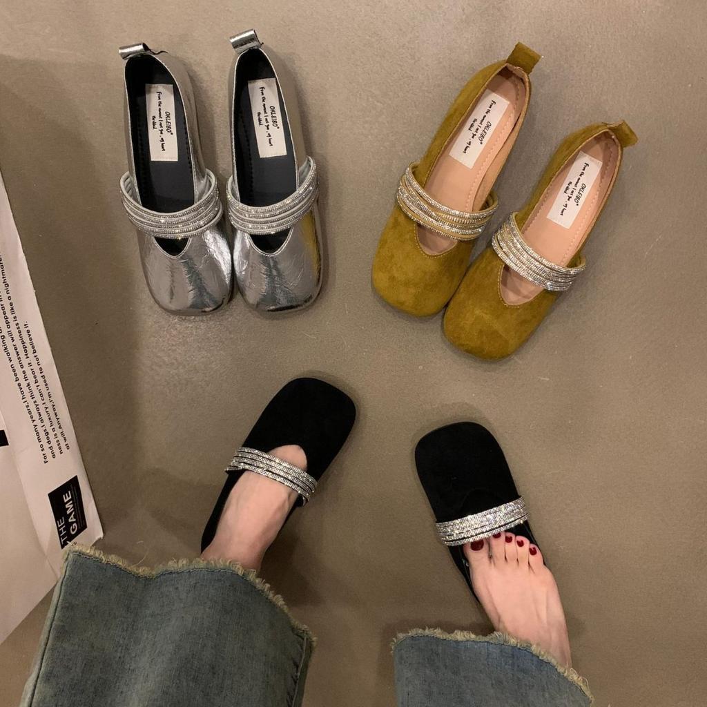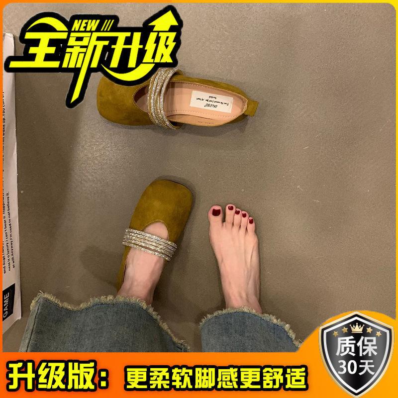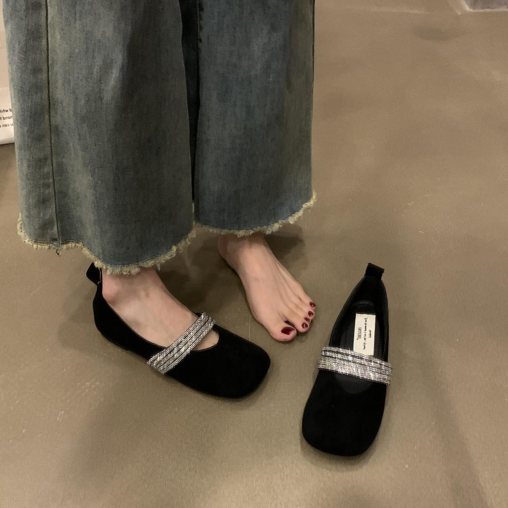 Французские нежные и универсальные туфли Мэри Джейн на плоской подошве 2025 новая коллекция весна-осень стразы балетки квадратный носок с вырезом одинарные туфли