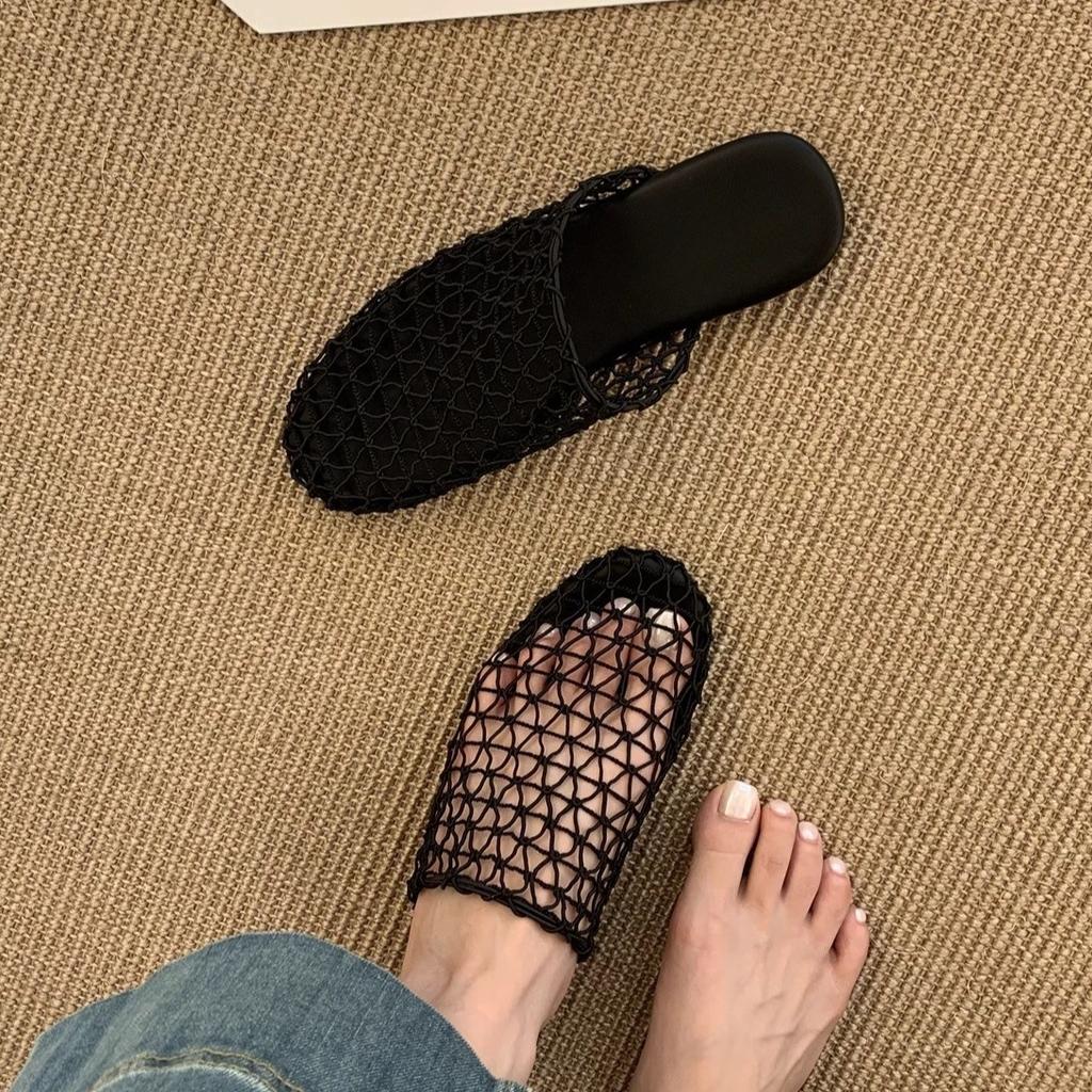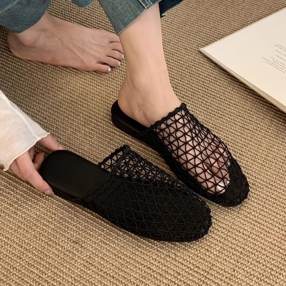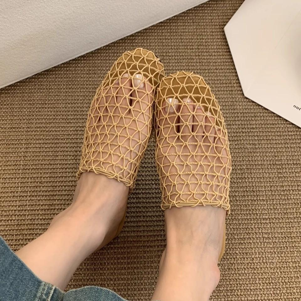 Ретро новые сетчатые полые дышащие прохладные тапочки рыболовная сеть плетеная сумка голова полушлепки плоские мюли римские сандалии