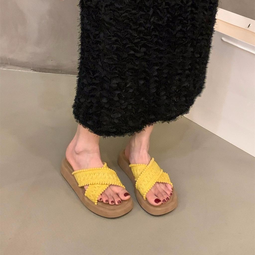 Плетеные шлепанцы на толстой подошве с перекрестными ремешками, туфельки феи, для улицы, лето 2025, с юбкой, для отпуска, ветрозащитные, пляжные сандалии