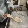 Легкие и стильные прозрачные босоножки на высоком каблуке для женщин, желающих похудеть, лето 2025 года, новые туфли на тонком каблуке средней высоты с квадратным носком
