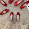 Туфли-балетки с круглым носком, бантом, плоской подошвой, маленькие красные, новые 2025, с мелким вырезом, универсальные, женские