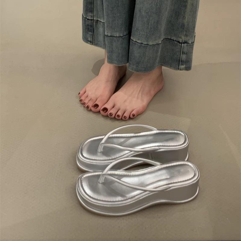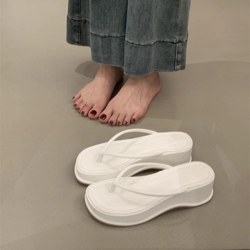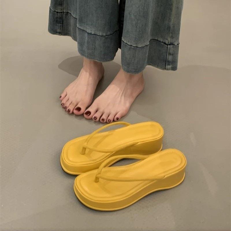 Шлепанцы на толстой подошве с застежкой-липучкой, новинка 2025 года, летняя верхняя одежда, праздничные босоножки на танкетке
