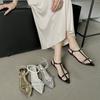 Французские сандалии на толстом каблуке с ремешком, туфельки феи, новинка лета 2025 года, с юбкой, серебристые римские туфли с открытым носком