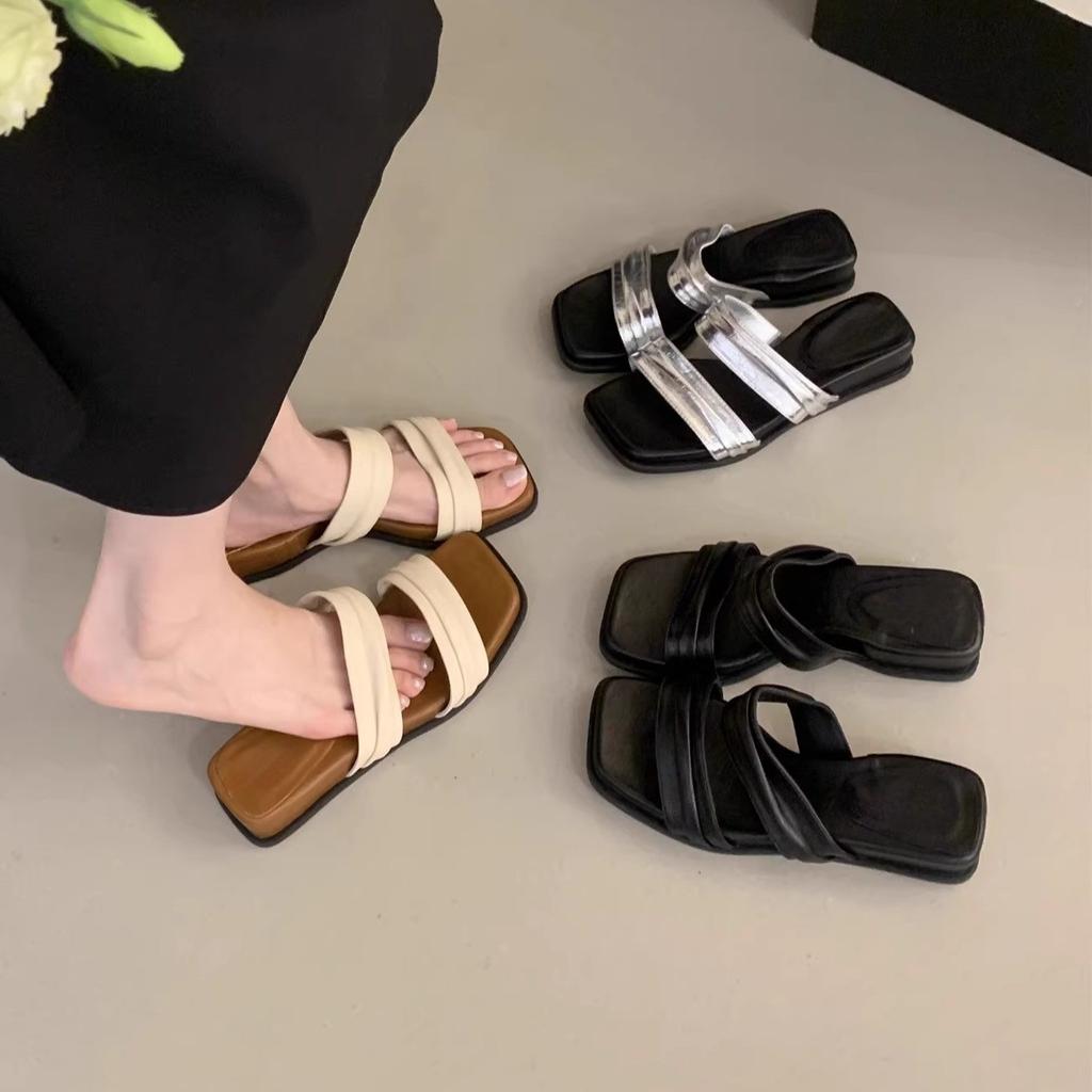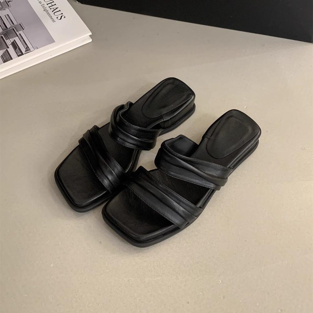 Шлепанцы на толстой подошве для женщин для ношения летом, новые сандалии на танкетке, французские нежные сказочные сандалии с открытым носком