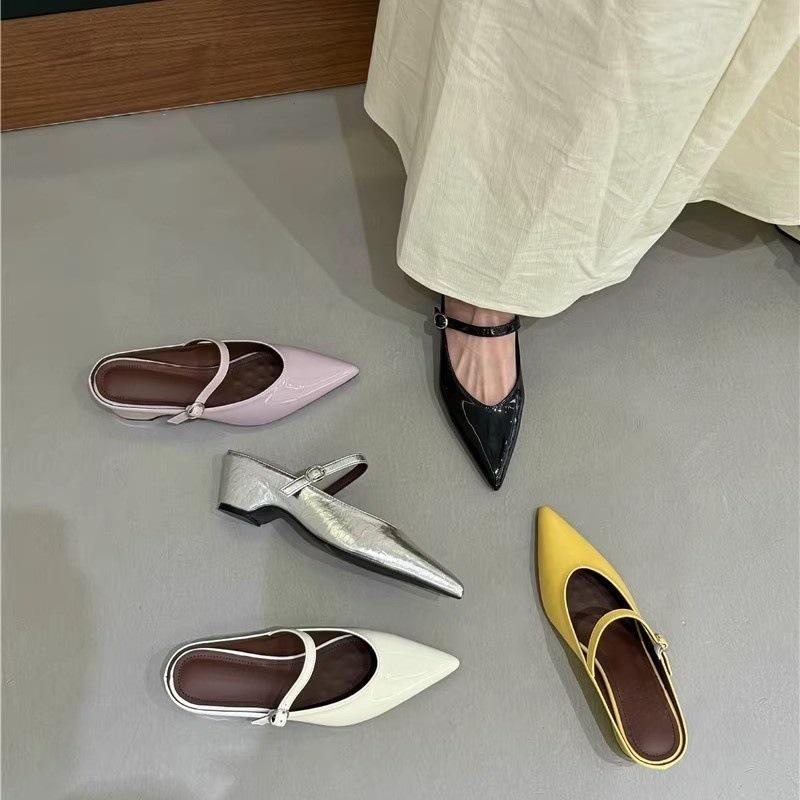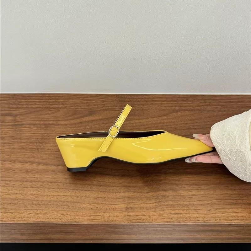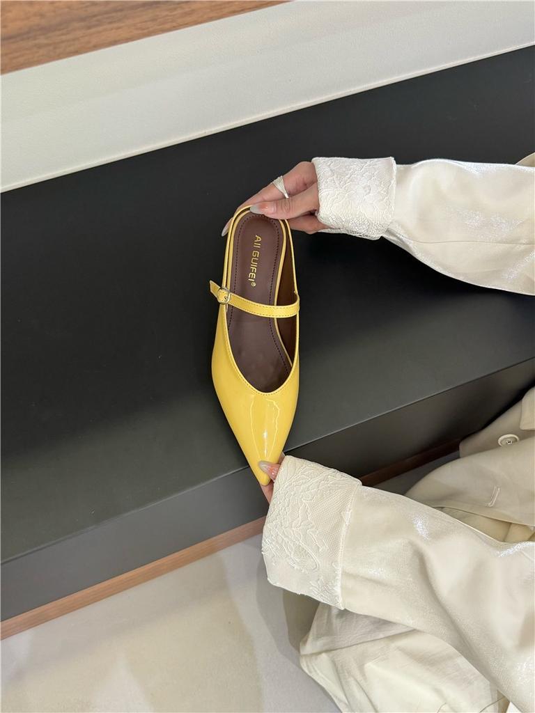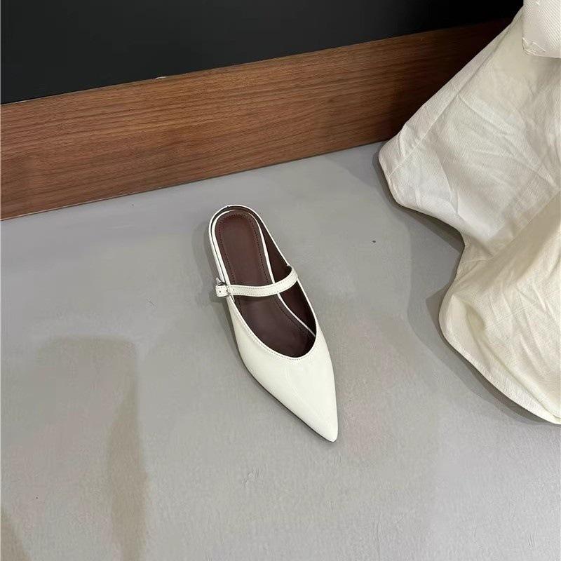 Женские полушлепанцы Баотоу Весна 2025 Французский темперамент Нежные Вечерний бриз Острый носок Пуговица Наклонный каблук Прохладные шлепанцы