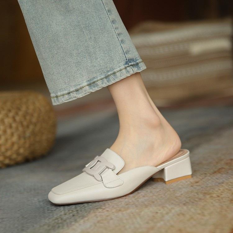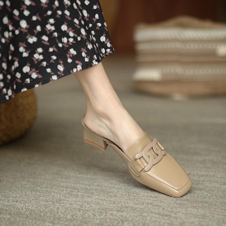 Тапочки Baotou полутапочки Muller женская модная верхняя одежда ленивый квадратный каблук средний толстый каблук классные тапочки французское ретро лето