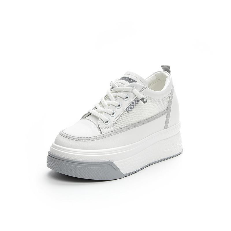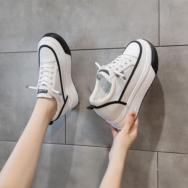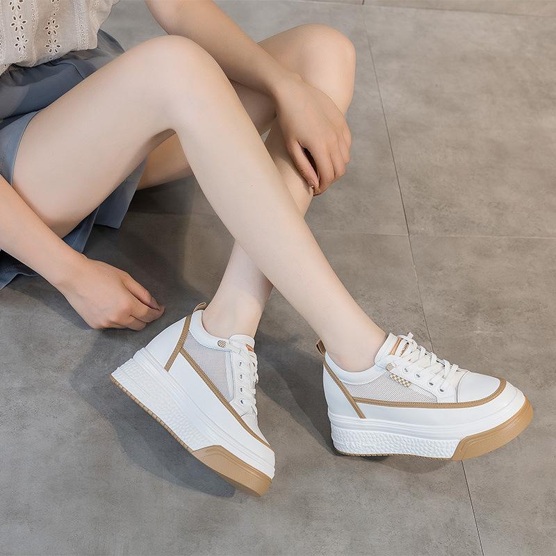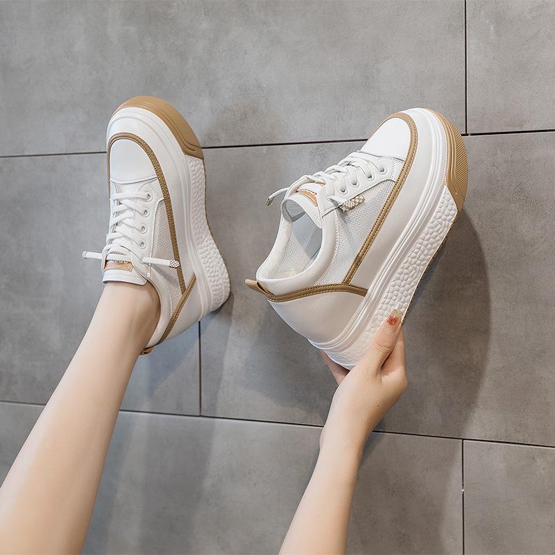 Кожаные маленькие белые туфли женские 2025 новые сетчатые дышащие туфли на толстой подошве, туфли-маффины, спортивная обувь, внутренняя высота увеличивает повседневные женские туфли