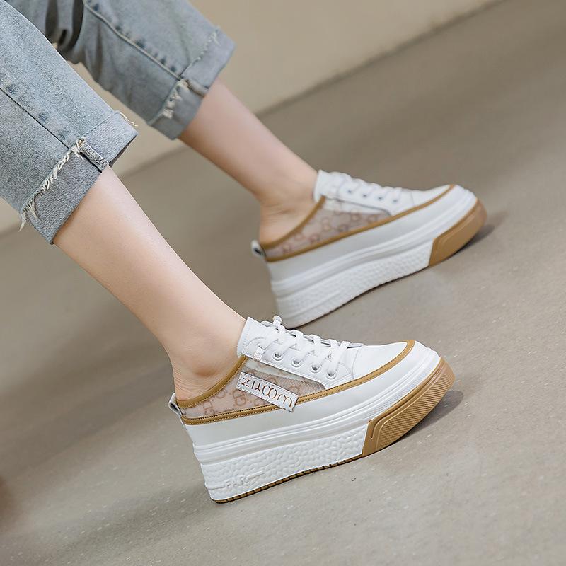 2025 весенние полутапочки женские сумка голова уличная одежда маффин толстая подошва внутренняя высота увеличение дышащая обувь женская приливная обувь ins Вэньчжоу женская