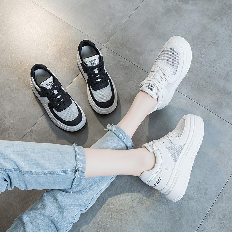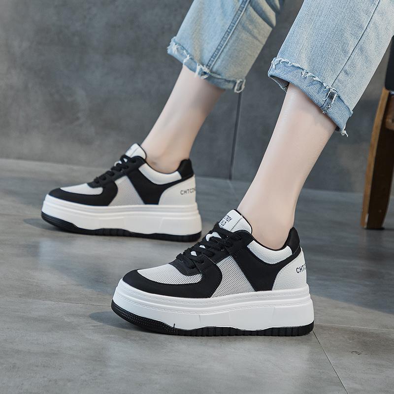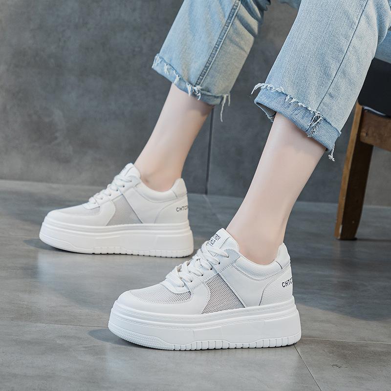 Кожаные маленькие белые туфли женские 2025 весна и лето новые сетчатые дышащие спортивные и повседневные туфли толстая подошва внутренняя высота увеличение 8 см женские с