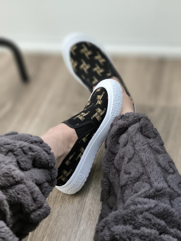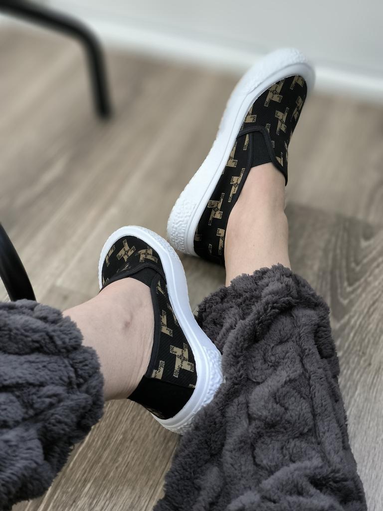 Слипоны ❤️ Я просто влюбилась в эти слипоны! Они не только выглядят очень стильно, но и оказались невероятно удобными, что для меня самое главное. Дизайн просто супер. Черный текстильный верх с контрастным узором смотрится очень модно и нескучно. Отдельный плюс - это, конечно, толстая белая подошва. Она делает обувь более трендовой, немного спортивной, и, что важно, выглядит очень надежной. Резиновый носок тоже добавляет им сходства с кедами, но при этом остается удобство слипонов. На ноге сидят хорошо, не давят. Идеальный вариант для долгих прогулок или когда нужно быстро выскочить из дома. На стопу 24,5 см выбрала 39 размер - подошли идеально. С удовольствием рекомендую 👍 Удачных покупок ❤️ Ваша Вика 😊
