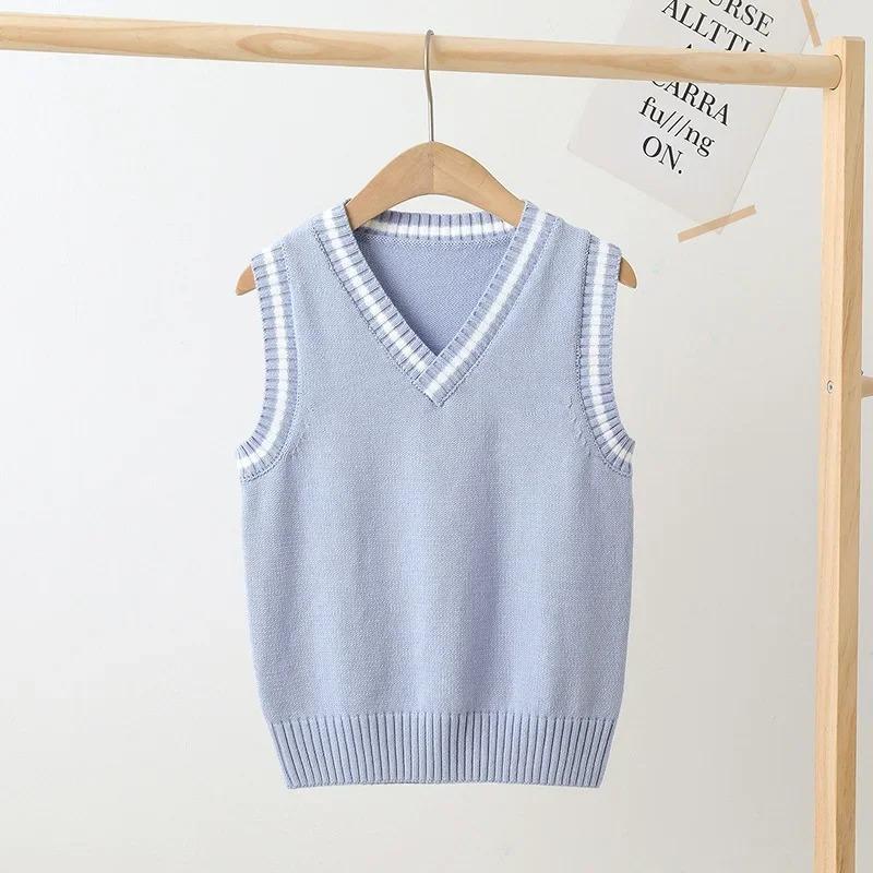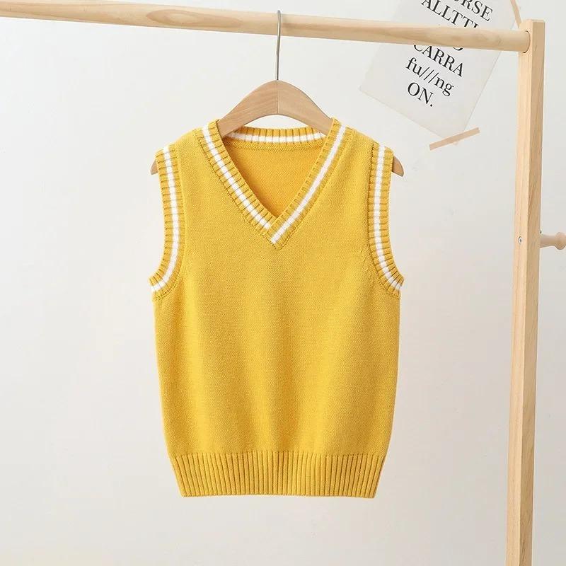 Детский вязаный жилет Весенне-осенние модели для мальчиков и девочек Пуловер Жилет-свитер в стиле колледжа