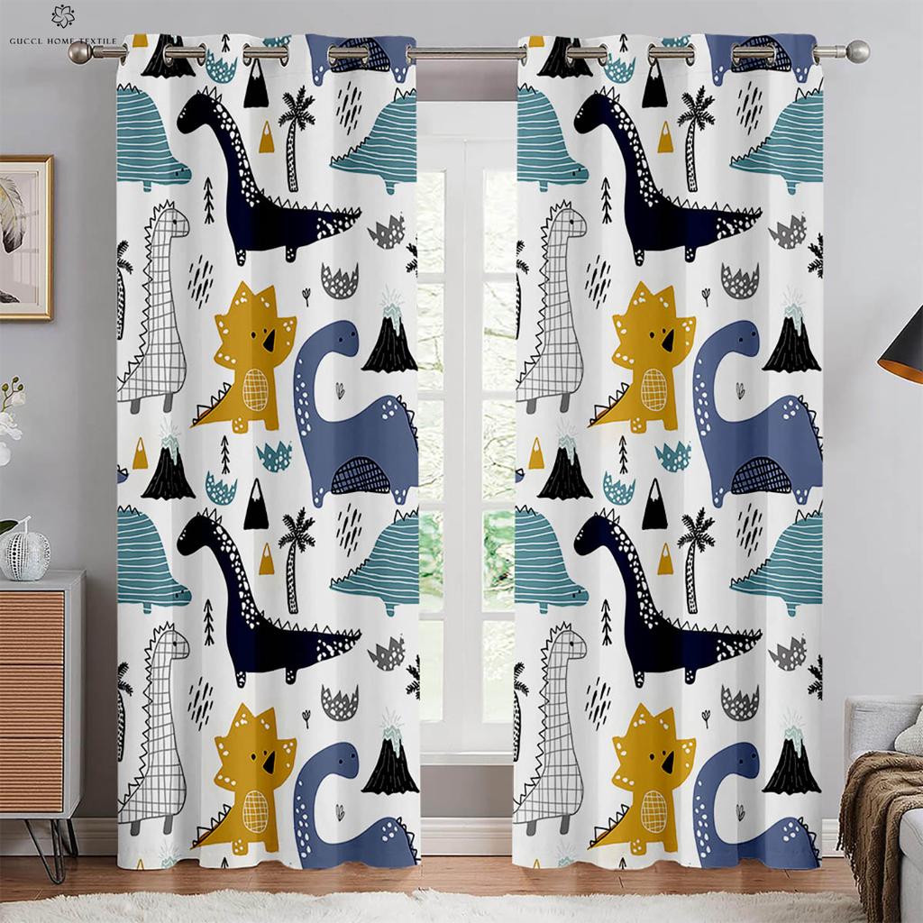 Милые шторы с принтом мультяшных животных и динозавров, 100% полиэстер, для спальни, гостиной, кабинета, детской комнаты, декоративные шторы, 2 штуки