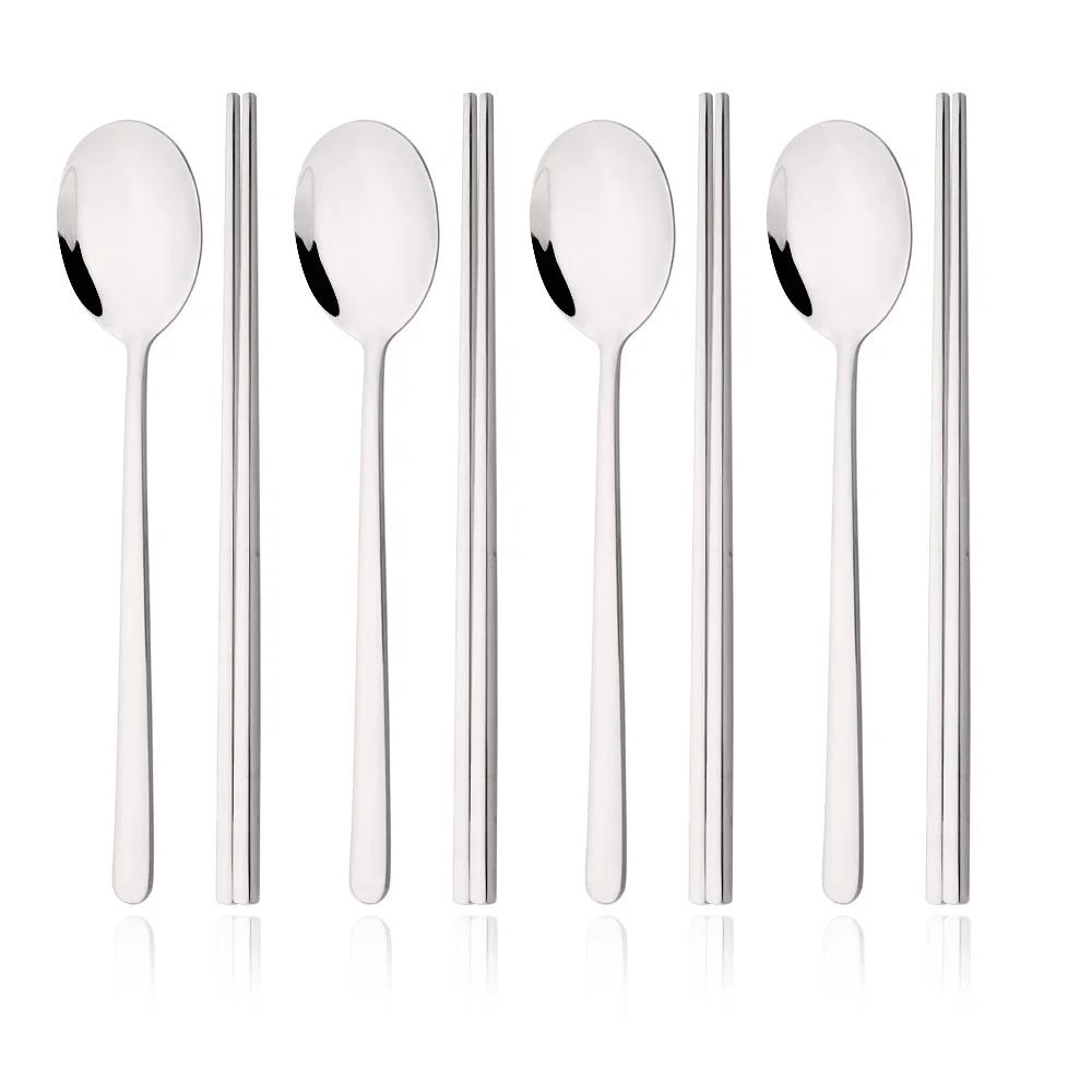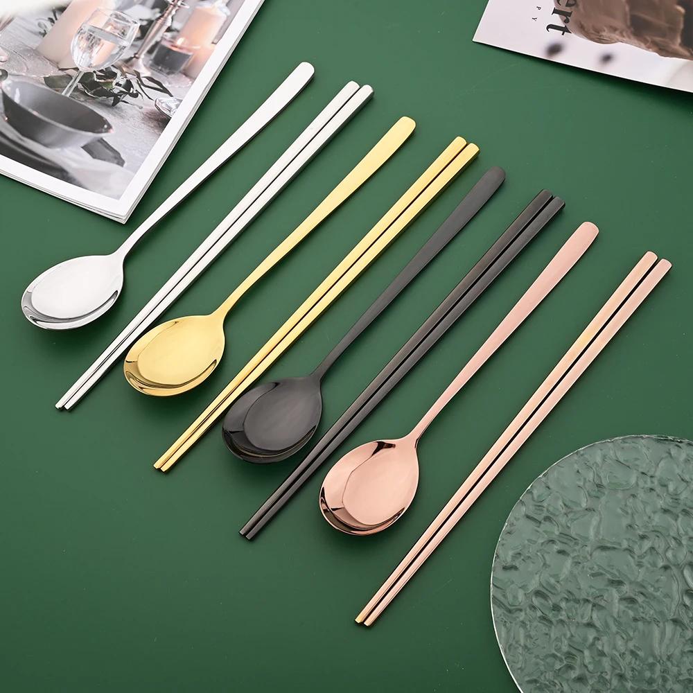 8 шт./набор Зеркальные палочки для еды Ложка Набор столовых приборов Золотой набор посуды Роскошные столовые приборы из нержавеющей стали Корейский набор посуды