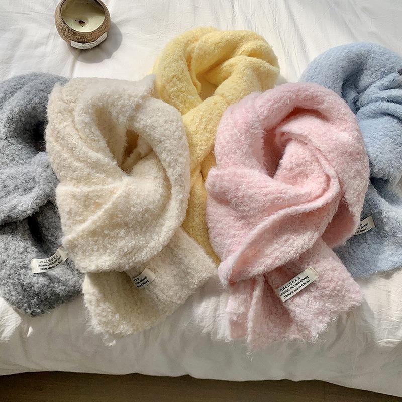 Вязаный шарф женский зимний новый однотонный универсальный теплый имитация кашемира мягкий восковой плюшевый шарф шарф
