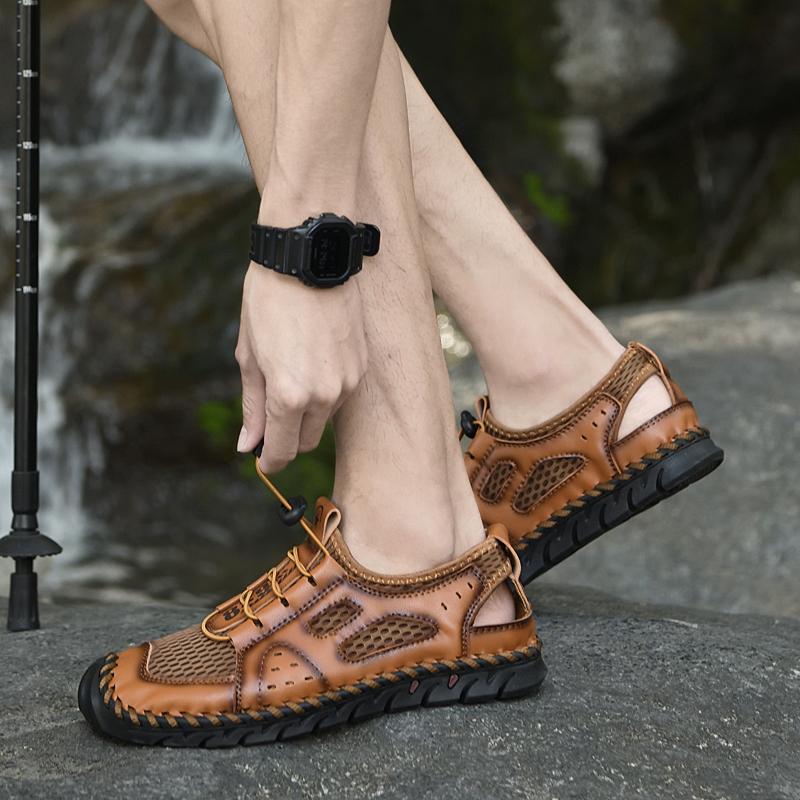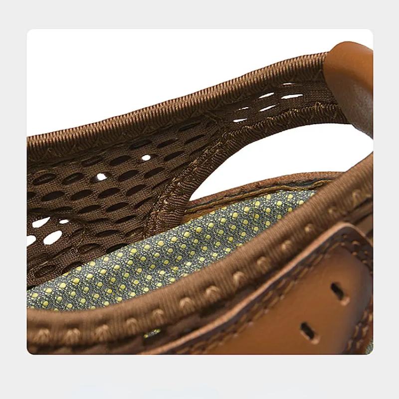 Летняя мужская повседневная обувь Кожаные сандалии Дышащая сетчатая обувь