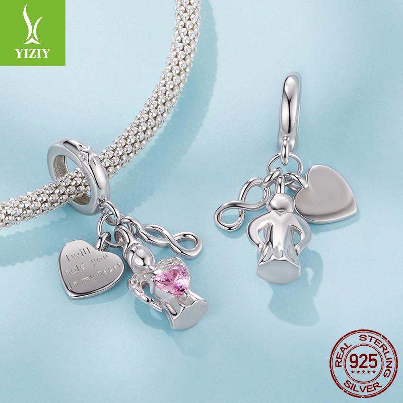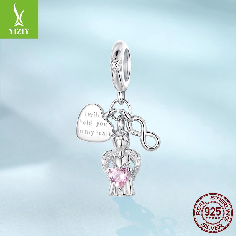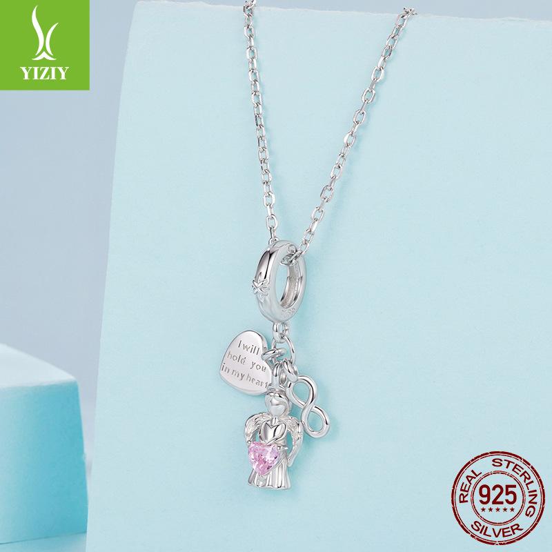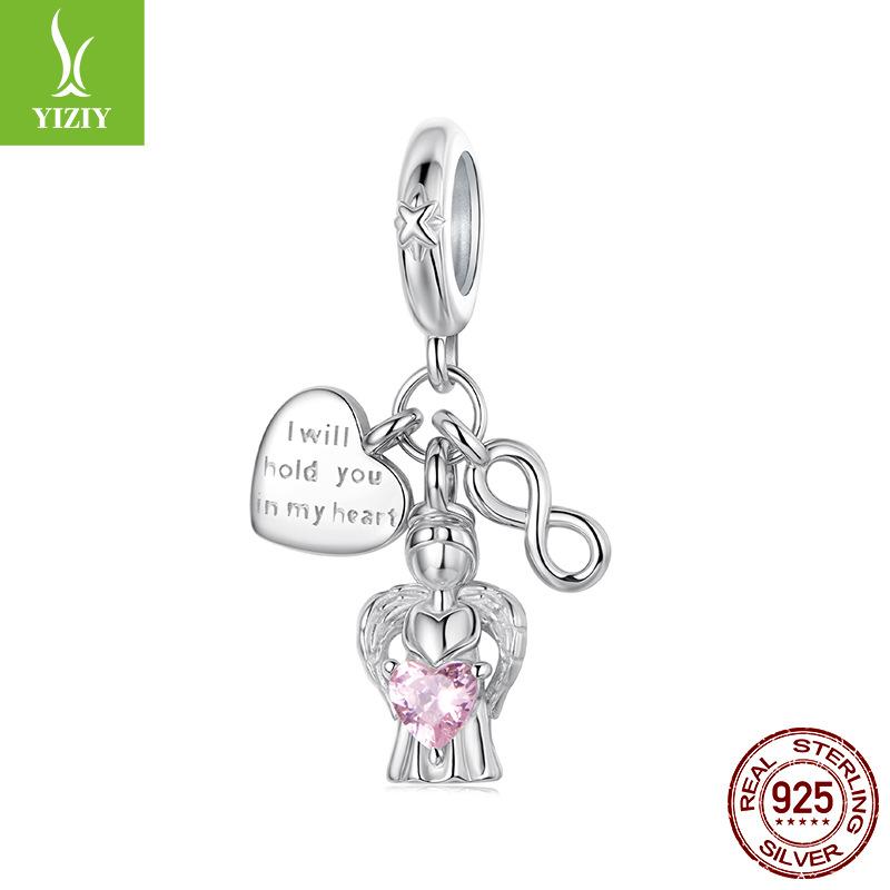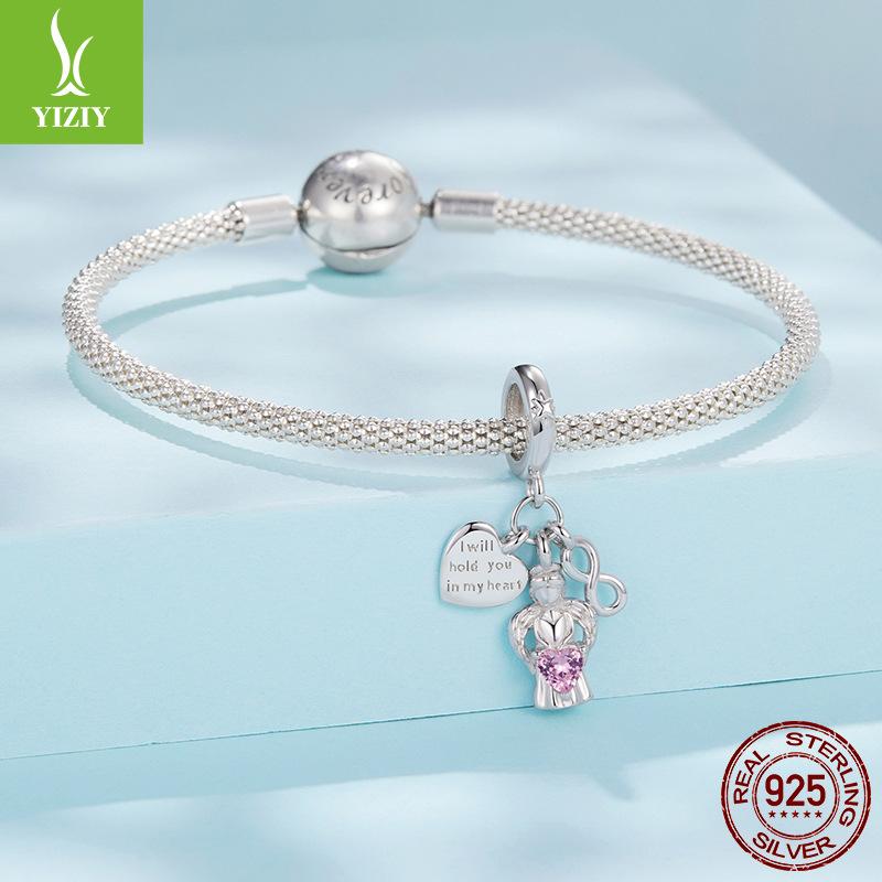 Pink Love Guardian Angel Pendant Accessories Romantic Love S925 Sterling Silver Bracelet Beaded