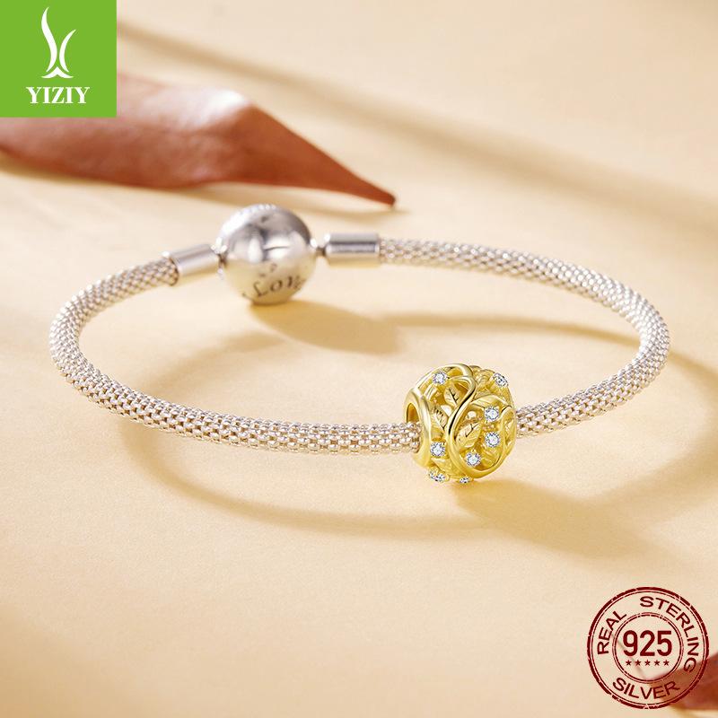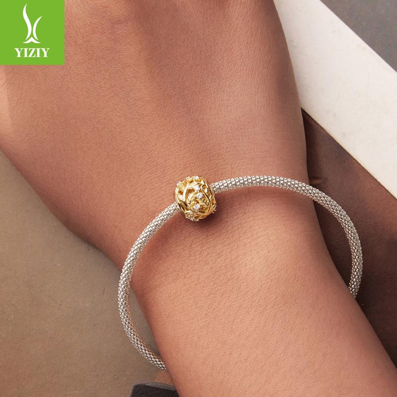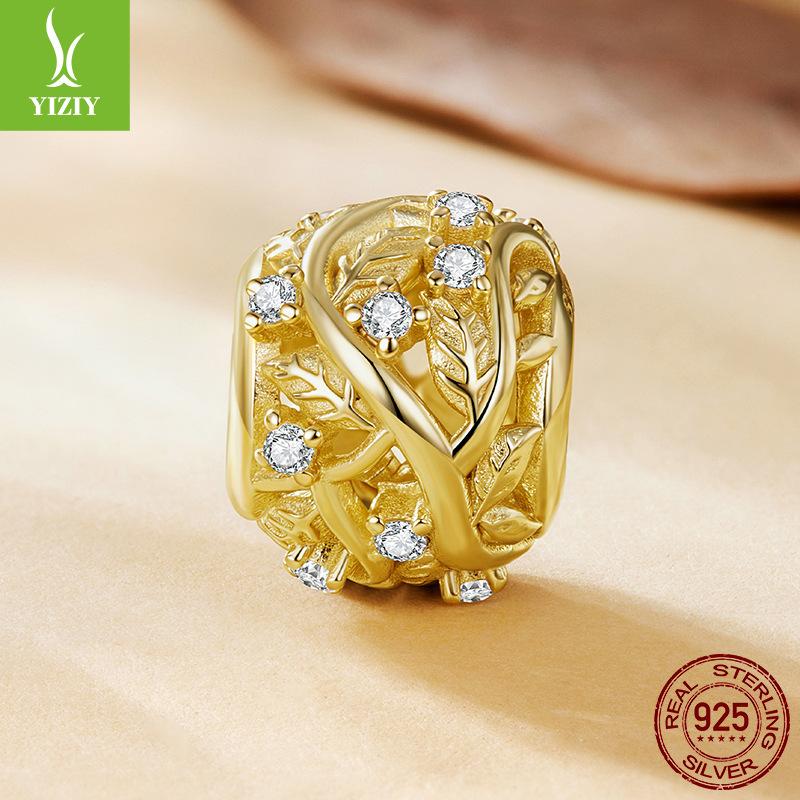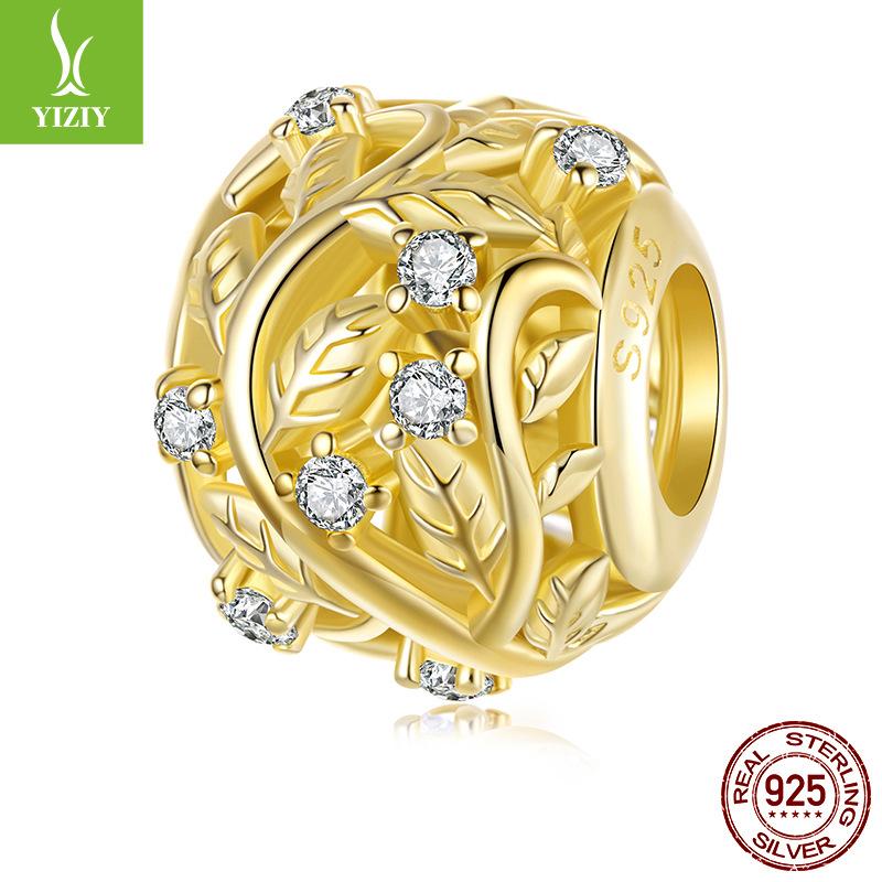 S925 Sterling Silver Plated 14K Gold Leaf Beaded Accessories Romantic Autumn Leaf Inlaid Zircon Beads Loose Beads