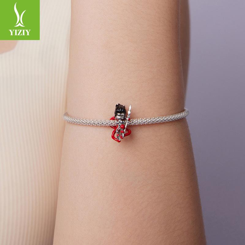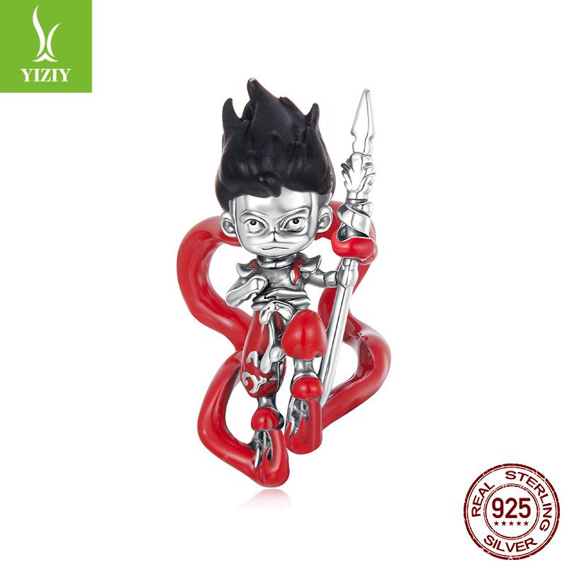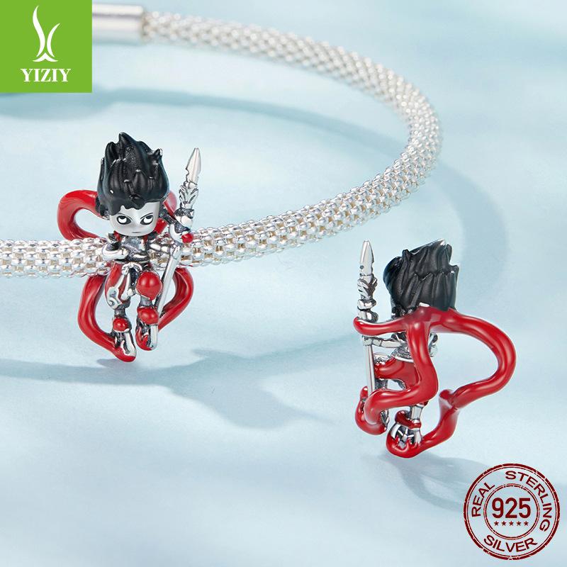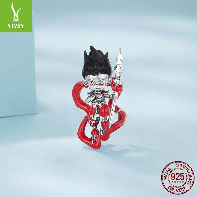 S925 Sterling Silver Nezha Bracelet Beaded National Tide Style Animation Diy Beads Loose Bead Jewelry Accessories