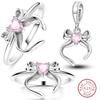 Розовое кольцо с бантом, открытое кольцо для девушки, милое и романтичное ювелирное изделие из стерлингового серебра S925.