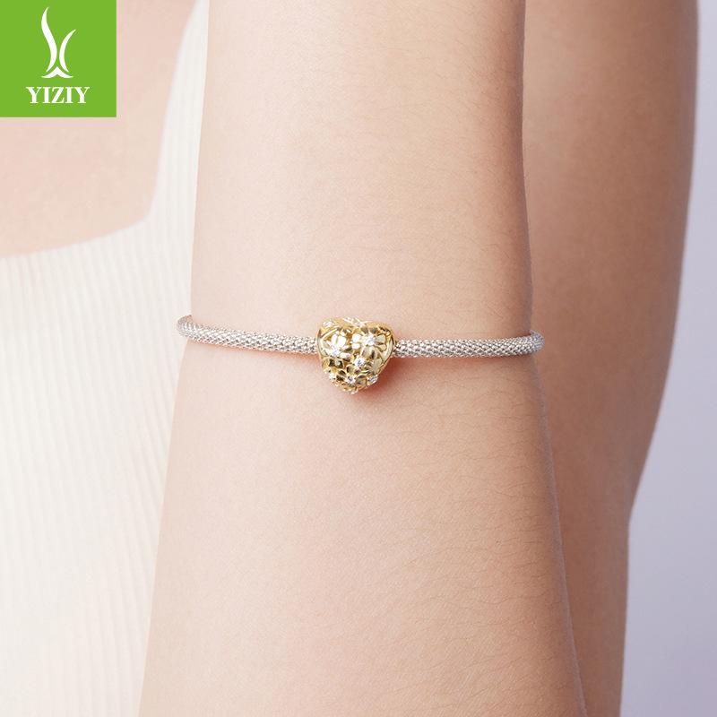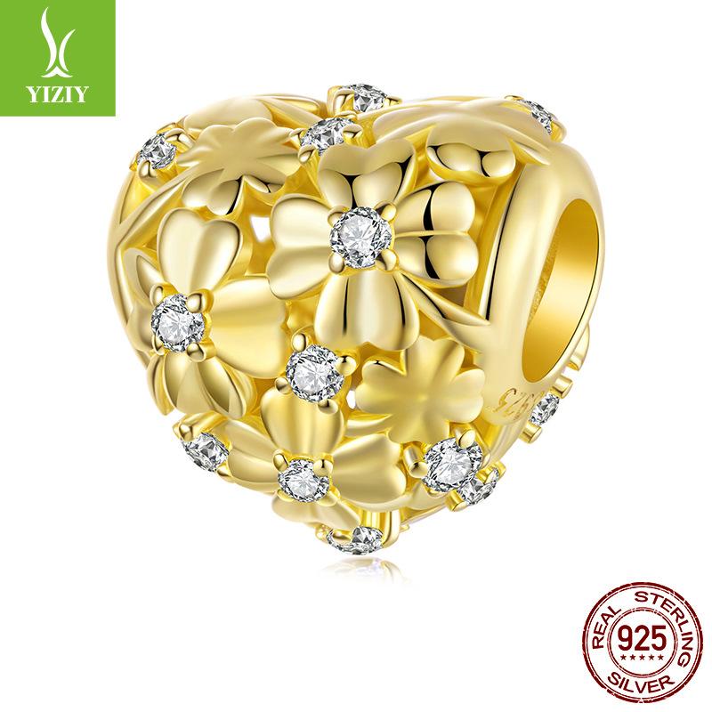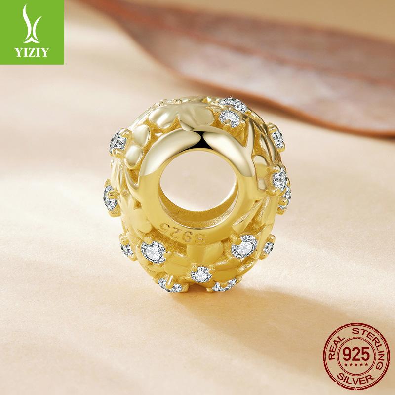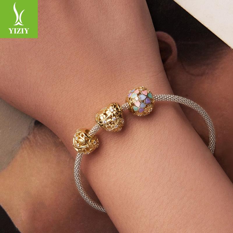 Golden Autumn Love Four-Leaf Clover Bracelet Beaded Accessories Charm S925 Sterling Silver Lucky Beads Loose Beads
