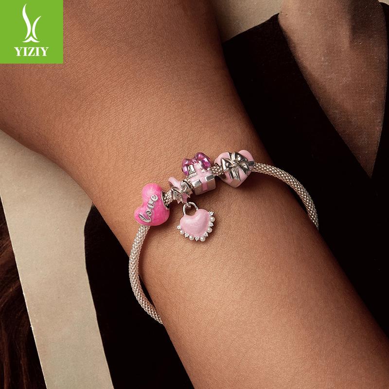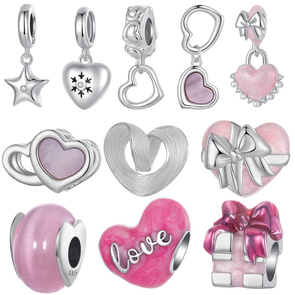 Серия «Сердце» Комбинация бусин Аксессуары для браслетов «Сделай сам» Ювелирные изделия 925 пробы в стиле легкой роскоши Розовый подарок на День святого Валентина