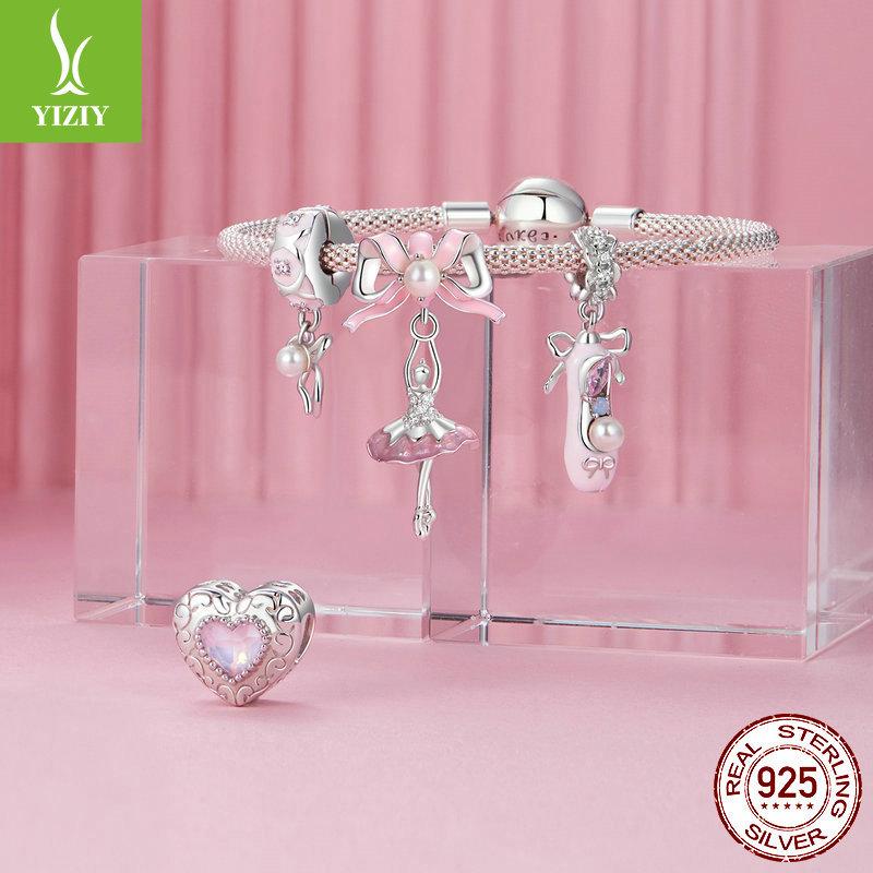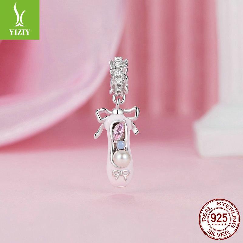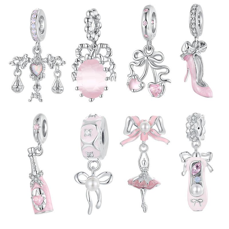 Романтичный розовый бант S925 серебряная подвеска ювелирные аксессуары милые туфли на высоком каблуке шампанское бусины для DIY