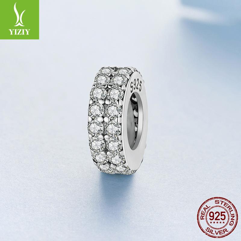 Двухслойный сверкающий циркон силиконовый позиционирующий браслет разделитель бусин простой классический бусины из стерлингового серебра S925 россыпные бусины