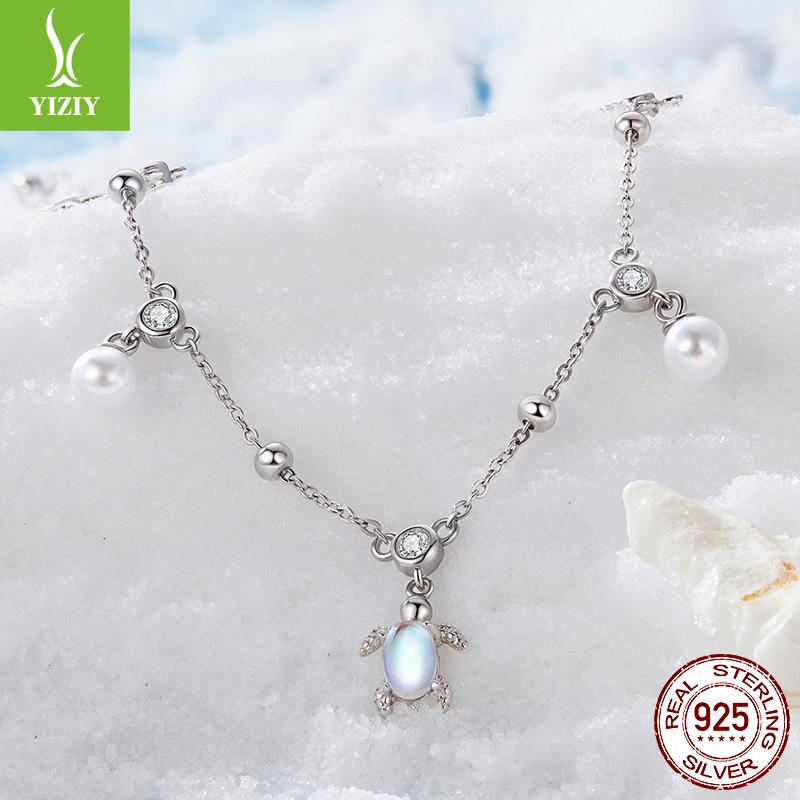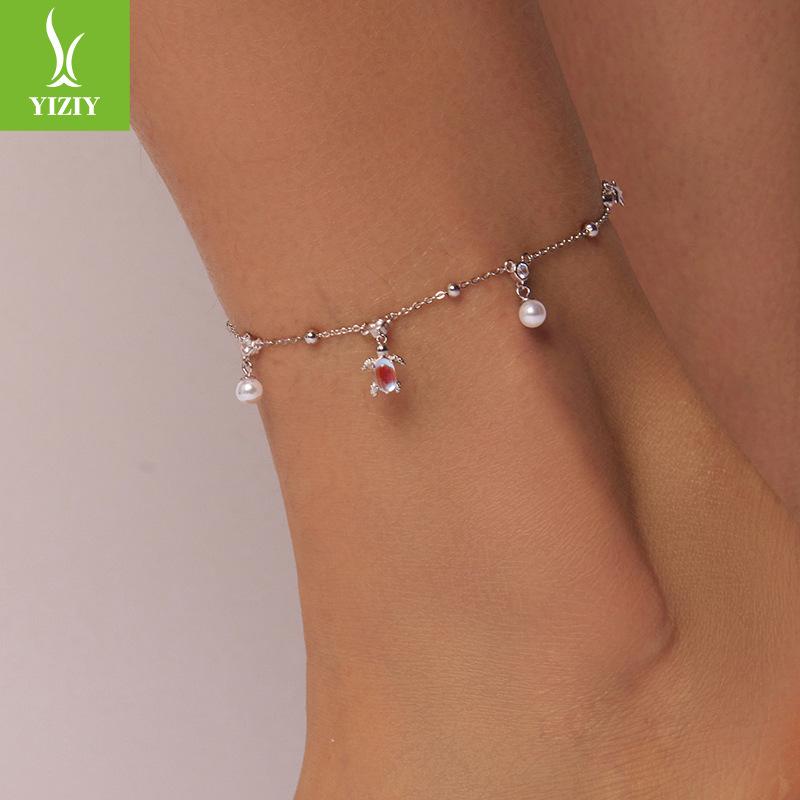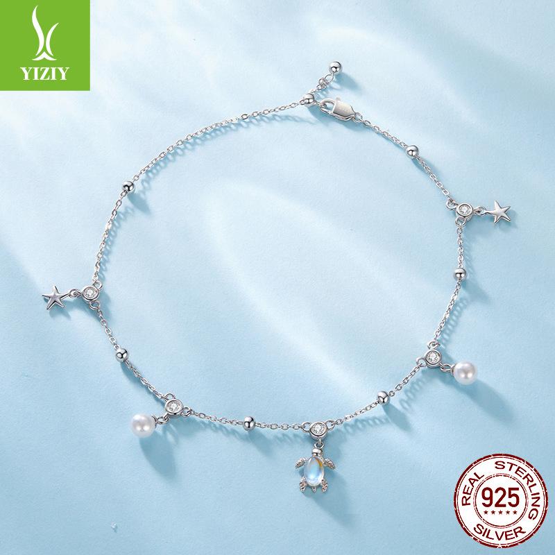 Серебряный браслет на ногу с черепахой S925, популярный летний браслет на ногу с лунным камнем