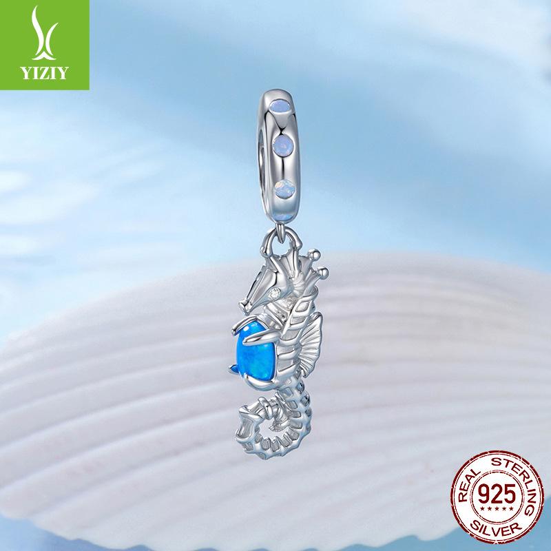 Подвеска Морской конёк из серебра S925, DIY браслет, бусина-шарм, серебряная бусина 925 пробы, аксессуары для ювелирных изделий