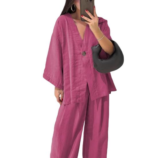 Универсальный свободный крой: Этот женский костюм, созданный для создания стильного и комфортного образа, отличается свободным кроем, который подчеркивает ваш силуэт и обеспечивает максимальную свободу движений.. Отдыхая дома или выходя на улицу, наслаждайтесь идеальным сочетанием моды и отдыха.