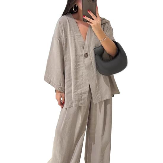Вечная элегантность: Этот комплект из двух предметов идеально подходит женщинам, которые ценят простой и повседневный стиль. Он выходит за рамки тенденций и предлагает элегантность, неподвластную времени.. Подходит для разных типов фигур и возрастов и станет обязательным дополнением к вашему гардеробу, добавив непринужденной изысканности.