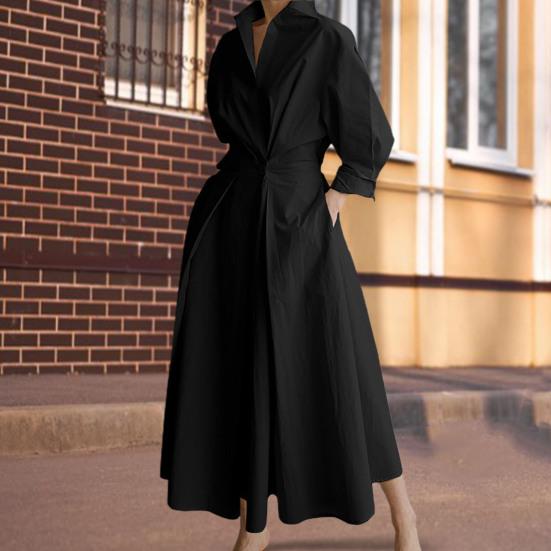 Стильный дизайн лацканов: Подчеркните свой образ с помощью этого платья с шикарными лацканами и облегающим А-образным силуэтом, подчеркивающим вашу фигуру.. Зауженная талия добавляет нотку изысканности, что делает его идеальным как для повседневных выходов, так и для официальных мероприятий.