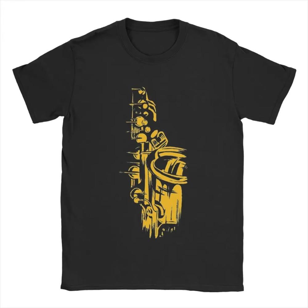 Футболки с саксофоном, мужские, 100% хлопок, винтажная футболка с круглым вырезом, футболка с коротким рукавом, оригинальная одежда