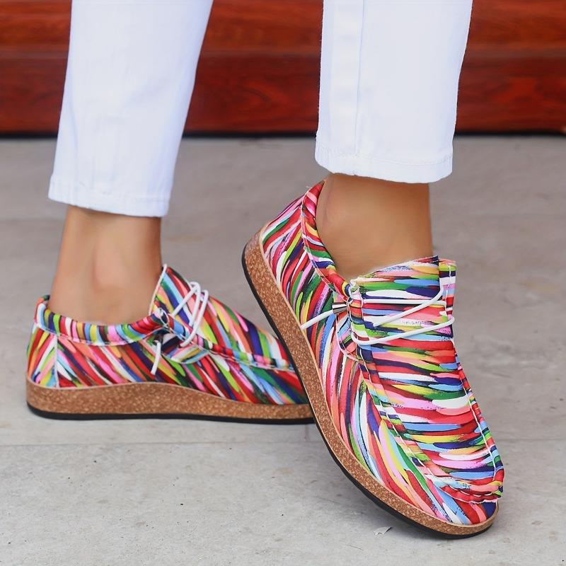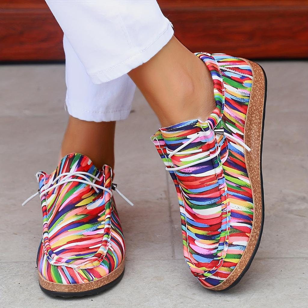 Женские сексуальные полосатые повседневные туфли - Всесезонные плоские кроссовки с простым носком, Верх из ткани, пригодной для ручной стирки, Стелька с искусственным покрытием