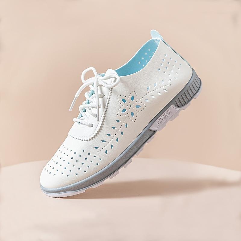 Женские дышащие кроссовки с перфорацией, геометрическим узором, голубые, низкие, из синтетического материала, с подошвой из ПВХ и амортизацией EVA для повседневной носки в любое время года