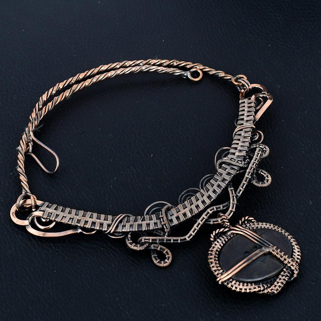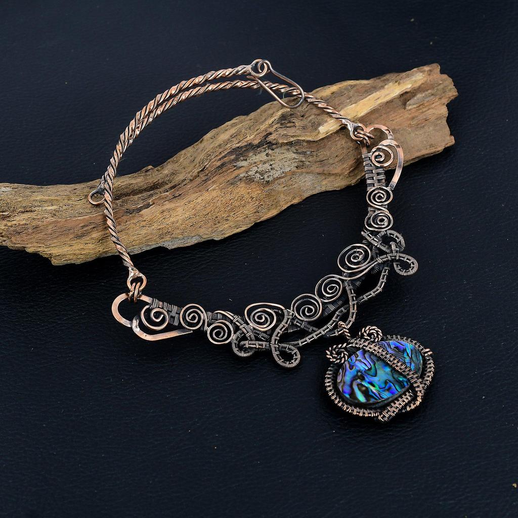 Ожерелье из раковины абалона, обернутое медной проволокой 999 пробы, регулируемая цепочка, подарок для женщин, ожерелье из драгоценных камней ручной работы