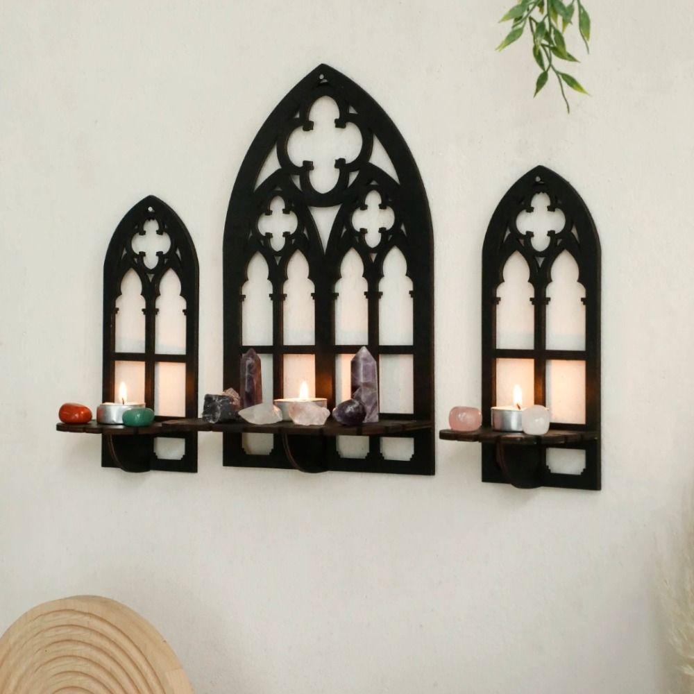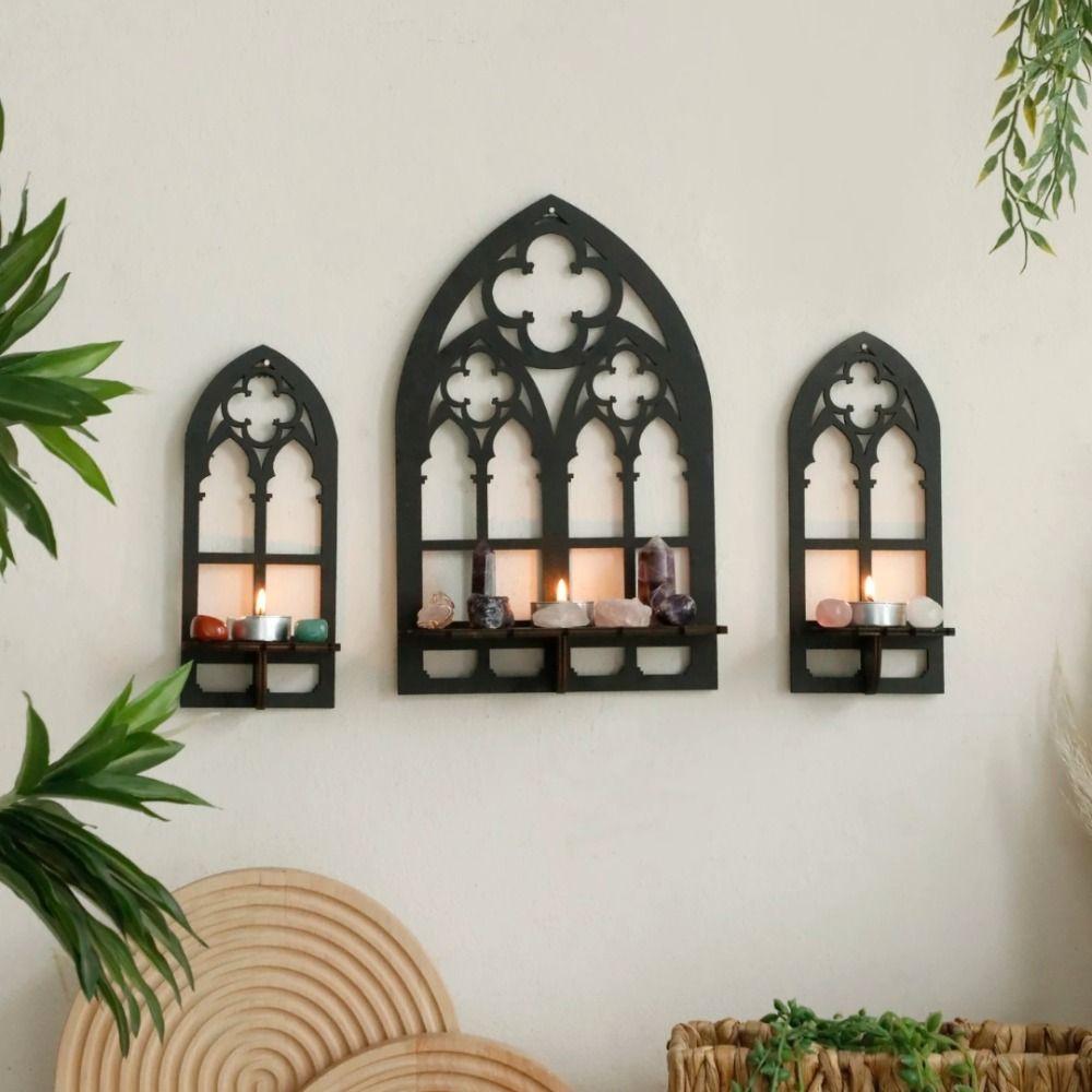 3 Pcs Vintage Wall Decor Wooden Hollow Cathedral Arch Frame Trendy Wall Decoration