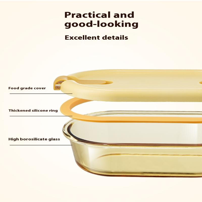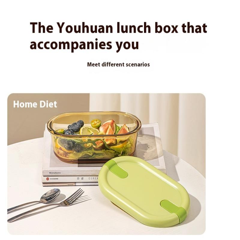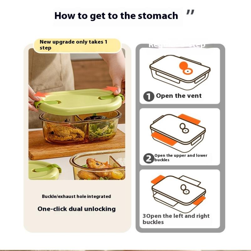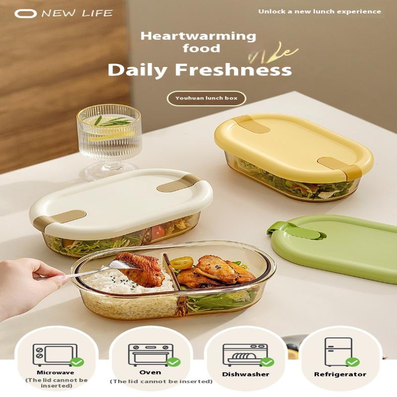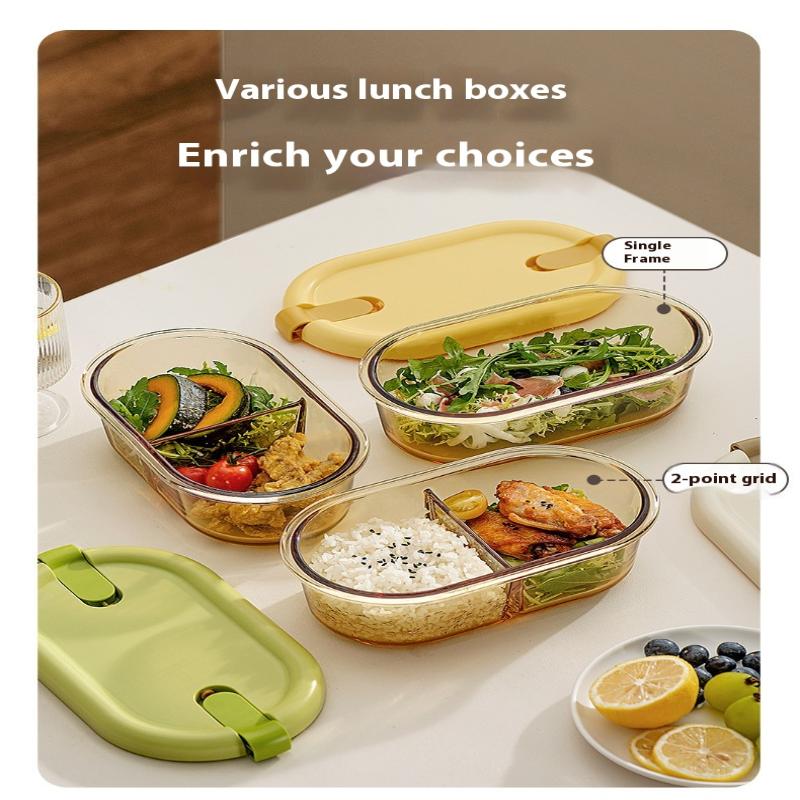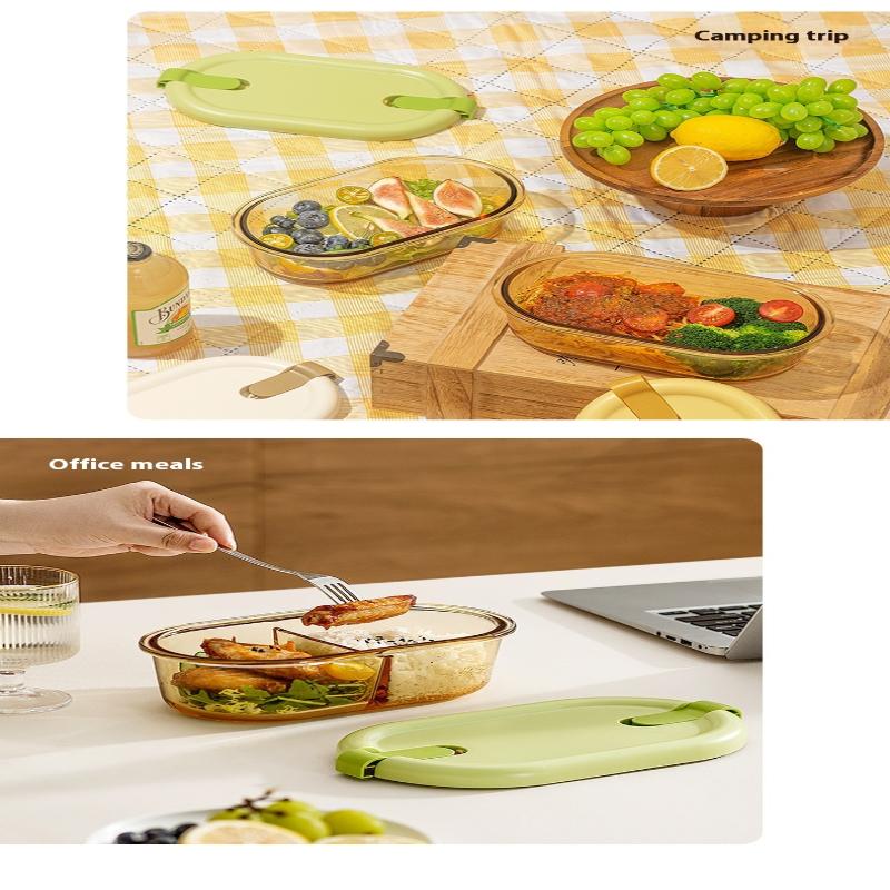 Стеклянный ланч-бокс для микроволновки для офисных работников, разделенный, термостойкий ланч-бокс-миска, герметичный и сохраняющий свежесть с крышкой