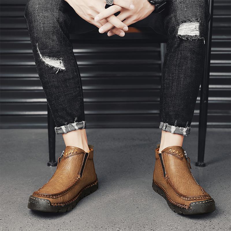 Мужская кожаная повседневная обувь больших размеров 39-48. Туфли с высоким берцем ручной работы. Повседневная обувь осень-зима.